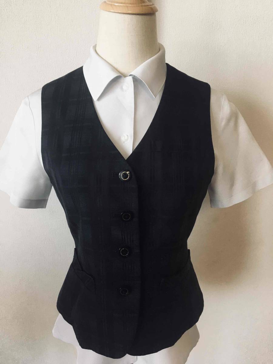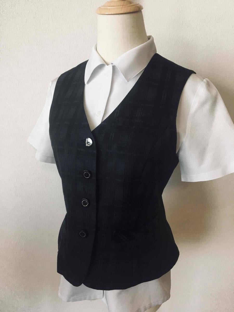 ※Aランク※【中古】SELERY_9号ベスト(黒:ブラック)チェック/03880/セロリー/かわいいOL制服/おしゃれ事務服