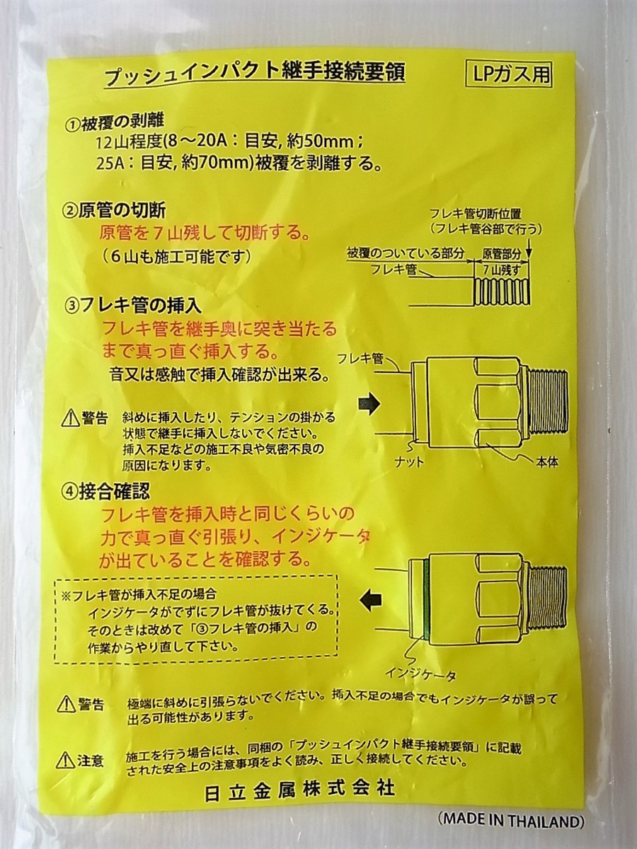 ☆日立金属 HITACHI プッシュインパクト継手接続要領 LIA 15A21・U UO LPガス用 10点セット◆ひょうたん印11,991円