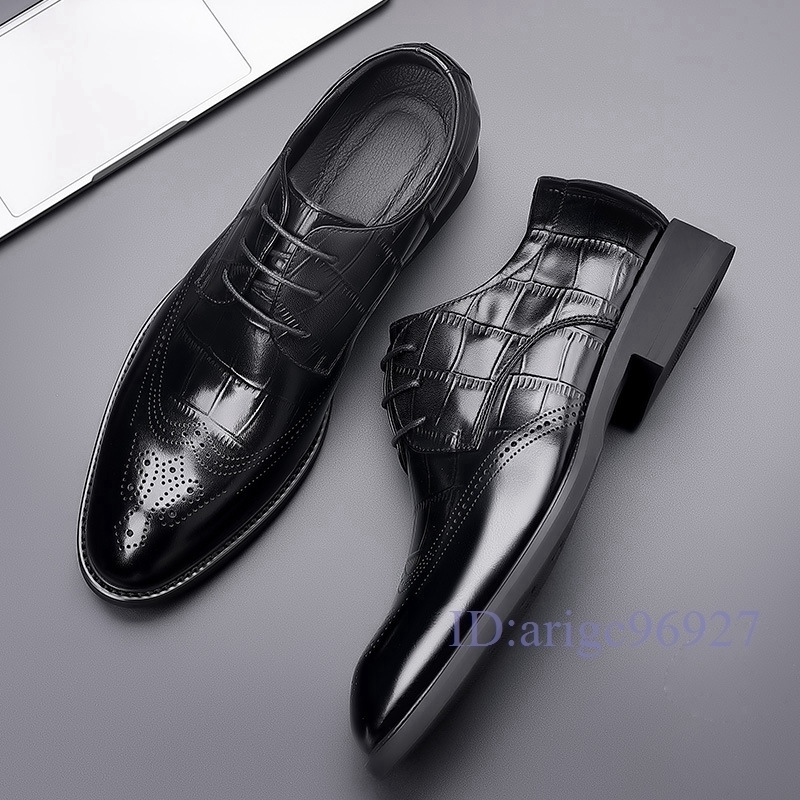 F534★革靴 レザーシューズ ビジネスシューズ 牛革 ドライビングシューズ 紳士靴 通勤 フォーマル 結婚式 ブラック 25.5cm
