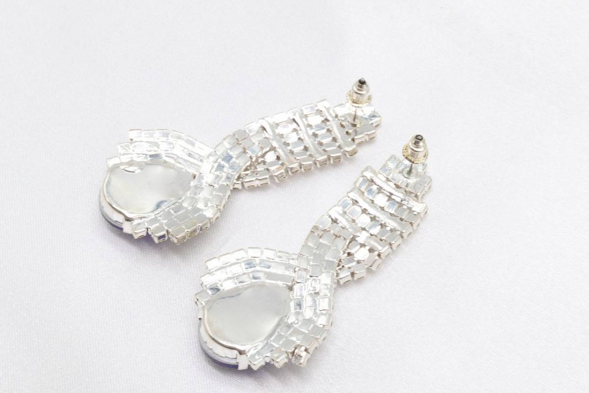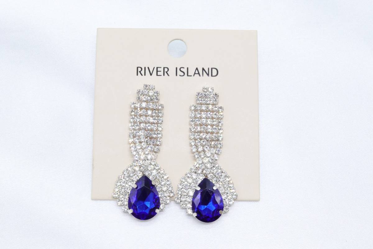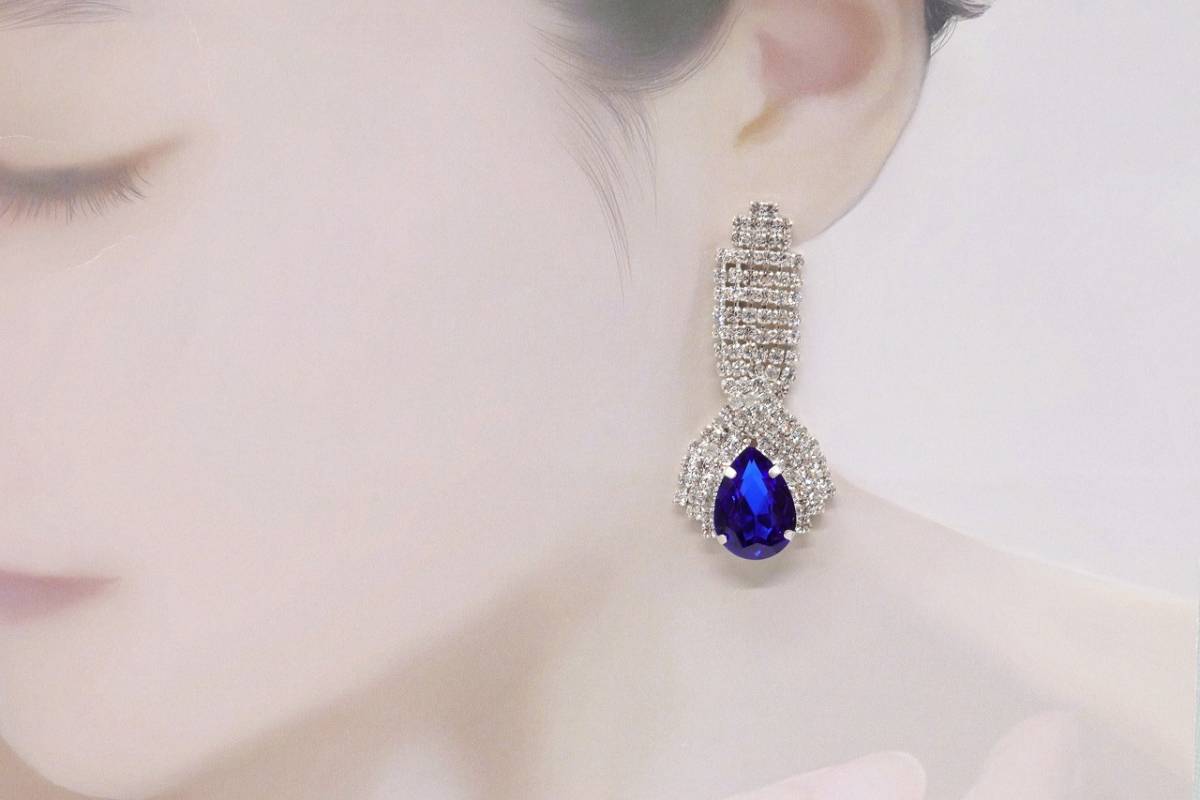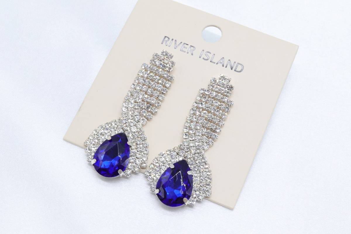 【KU227】LIVER ISLAND ビジュー パヴェ ロング ボリューム ピアス ブル― 未使用保管品【送料全国一律185円】
