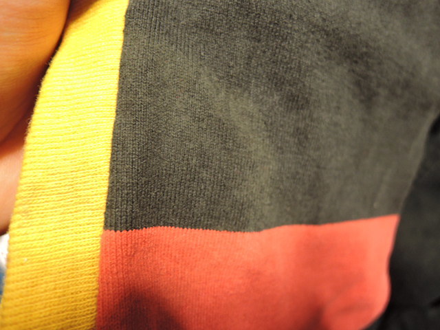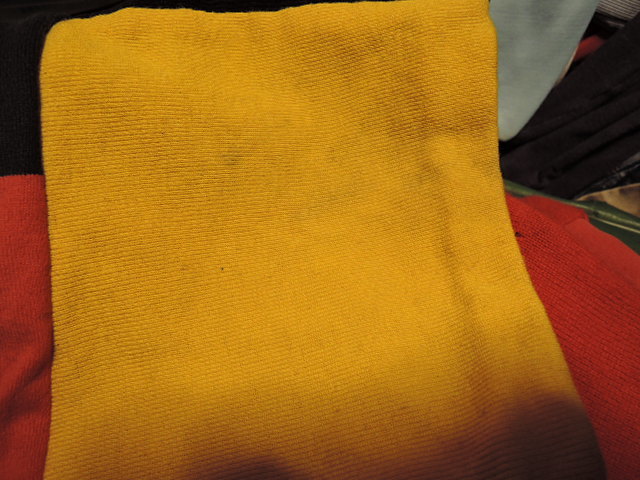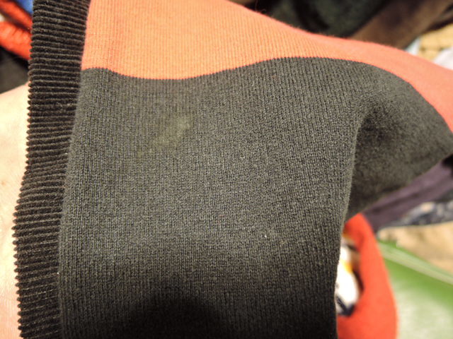 ニット部に黒ずみや小穴や虫食いが見られます。
