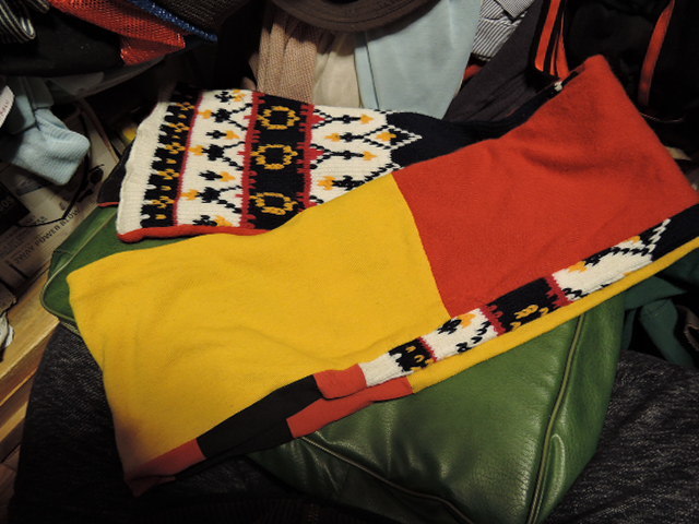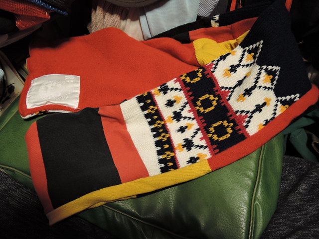 ビンテージのWOOL及びアクリルニットやコーデュロイ、ボーダー状のラガーシャツを使用している様で、