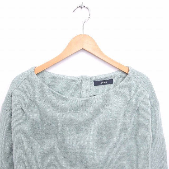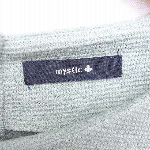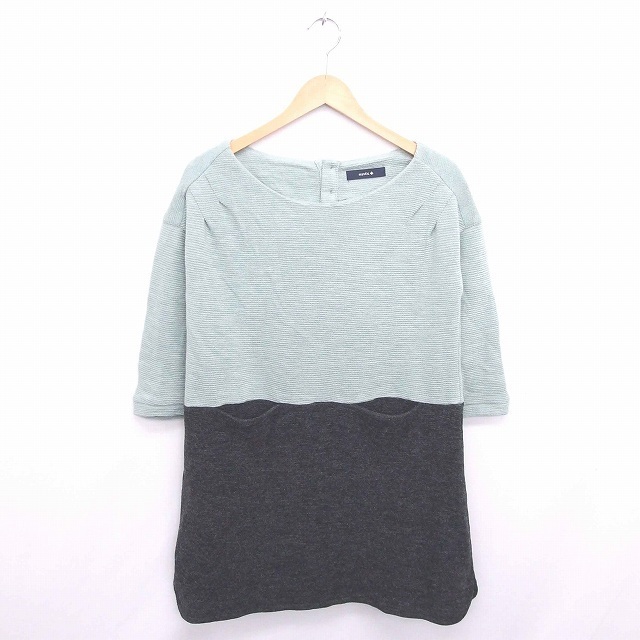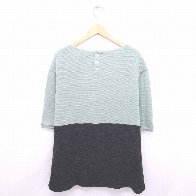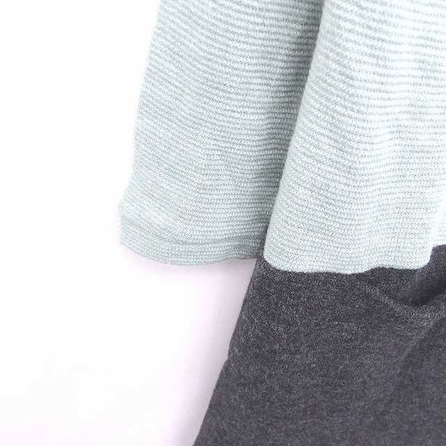 ミスティック mystic ワンピース ニット ひざ丈 バイカラー プルオーバー 七分袖 薄緑 黒 グリーン ブラック /TT5 レディース