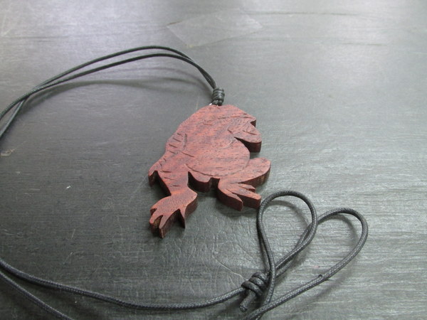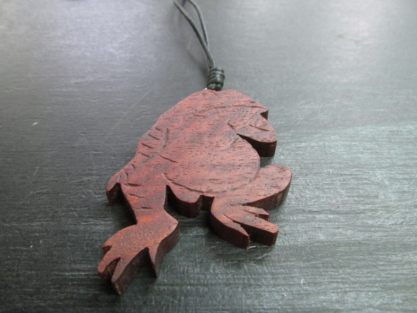 花梨ちぢみ杢オイル仕上げ頬杖をつくかえる彫刻ペンダント:a