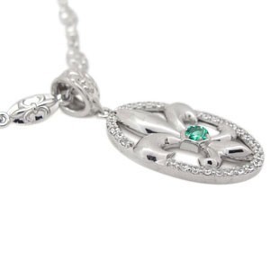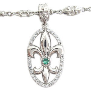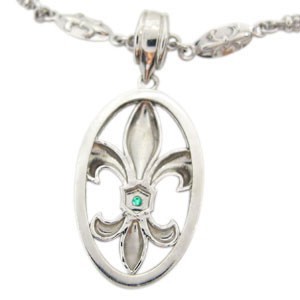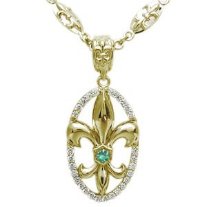 5月誕生石エメラルドを使用した10金製の、百合の紋章デザインメンズ・ネックレスペンダントです。