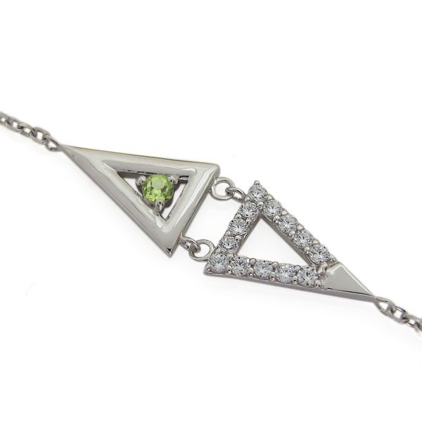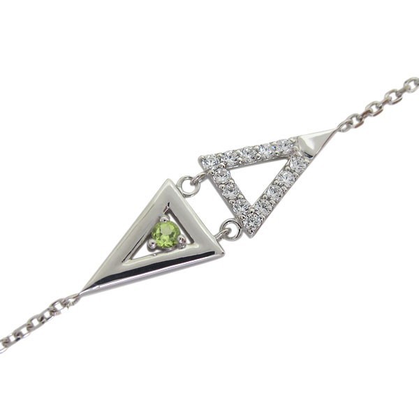 8月誕生石ペリドットを使用したプラチナ製の、トライアングルデザインのアンクレットです。