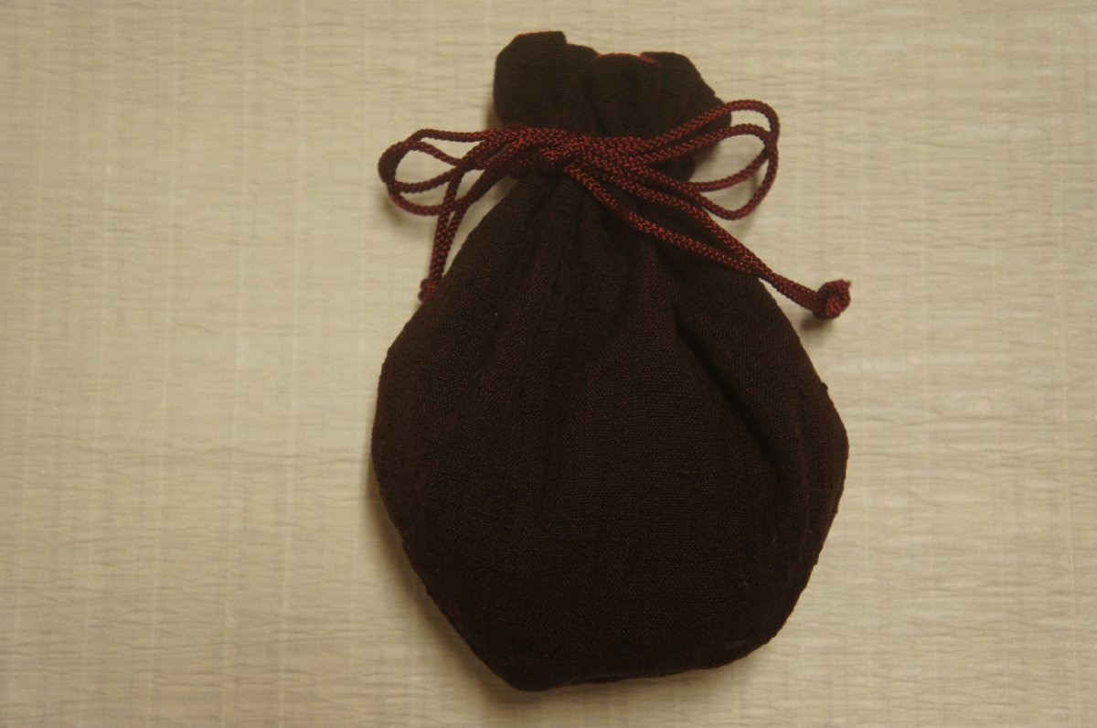商品名新品浦野理一経節紬紅檜皮色無地丸底巾着[UE205]
