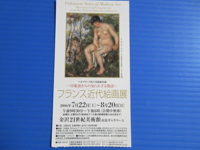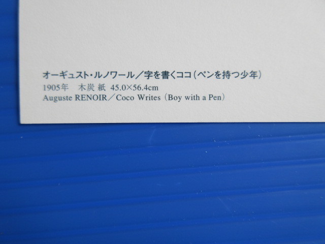 絵葉書(未使用)「オーギュスト・ルノアール」2006年フランス近代絵画展覧会で購入。未使用絵はがきです。購入後、仕舞い込んで眠っていました。比較的美品です。多少の紙の劣化、変色、ヨゴレ、シミ、キズ、などあります。サイズ約10.5センチ×15センチ4枚 専用ポリ袋あり、2006年金沢21世紀美術館での「フランス近代絵画展」の入場券半券あります。●自宅整理のため出品いたします。