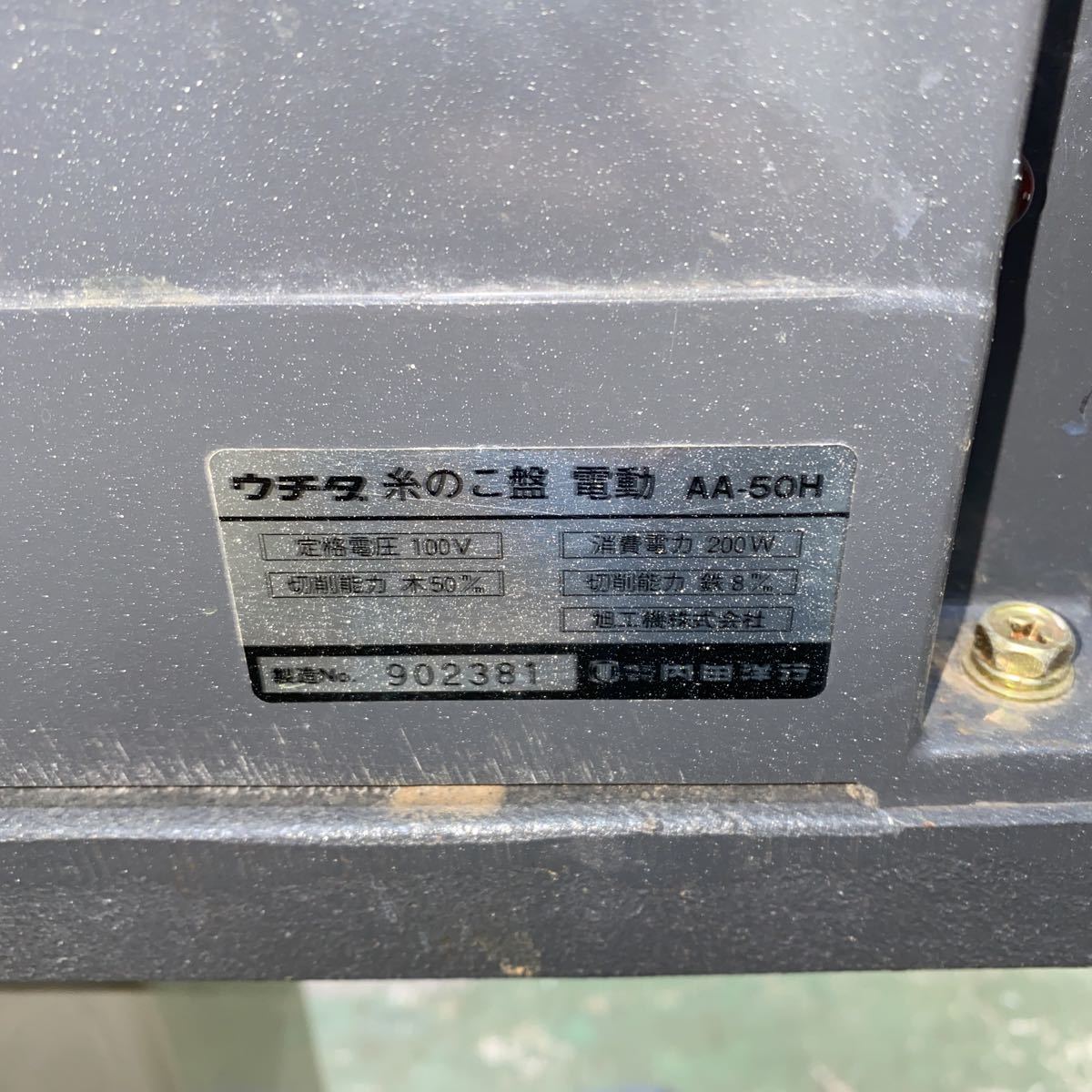 【JF10】ウチタ 糸鋸盤 糸のこ盤 電動 AA-50H 200W 100V 木工機械/木工加工 【通電と回転のみの確認】【石川県引取、発送可】
