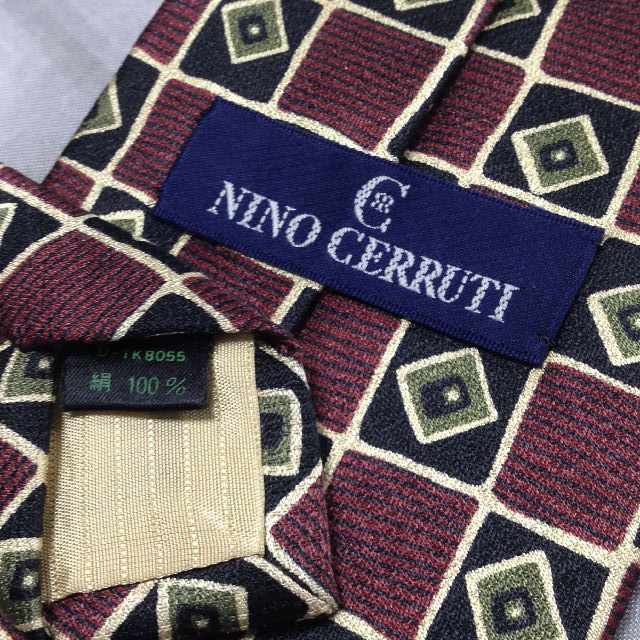 大人な色合いでオシャレ! ニノセルッティ NINO CERRUTI 良品 微光沢 ネクタイ シルク100% パターン柄 えんじ系 Q-007708 | |