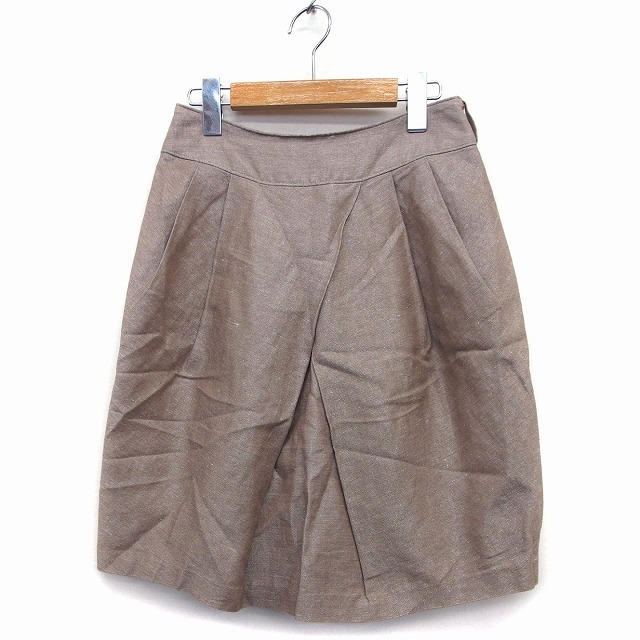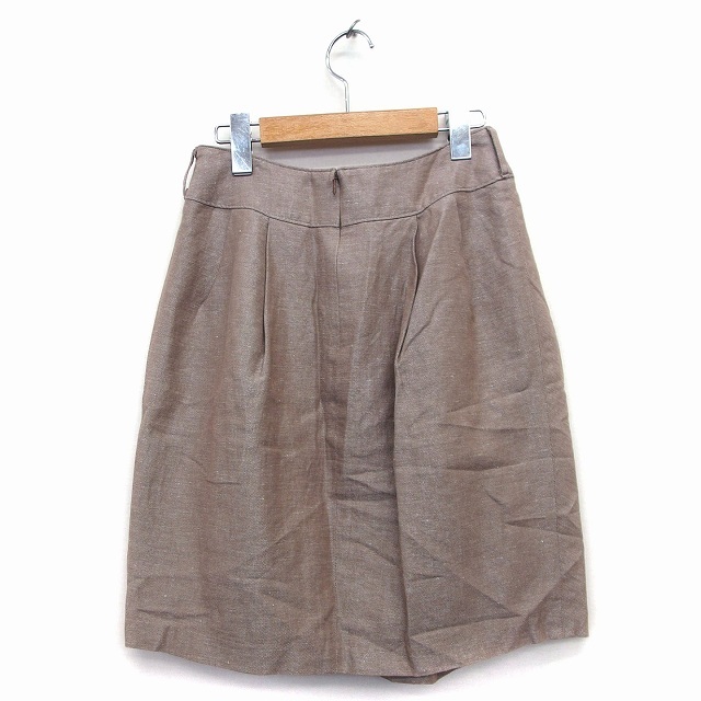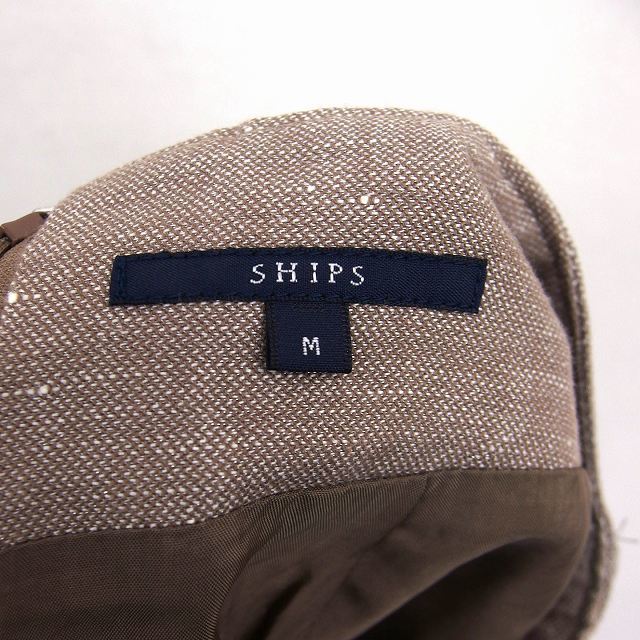 シップス SHIPS 台形 スカート 膝丈 タック 総柄 ラメ混 綿混 麻混 M ブラウン 茶 /HT17 レディース