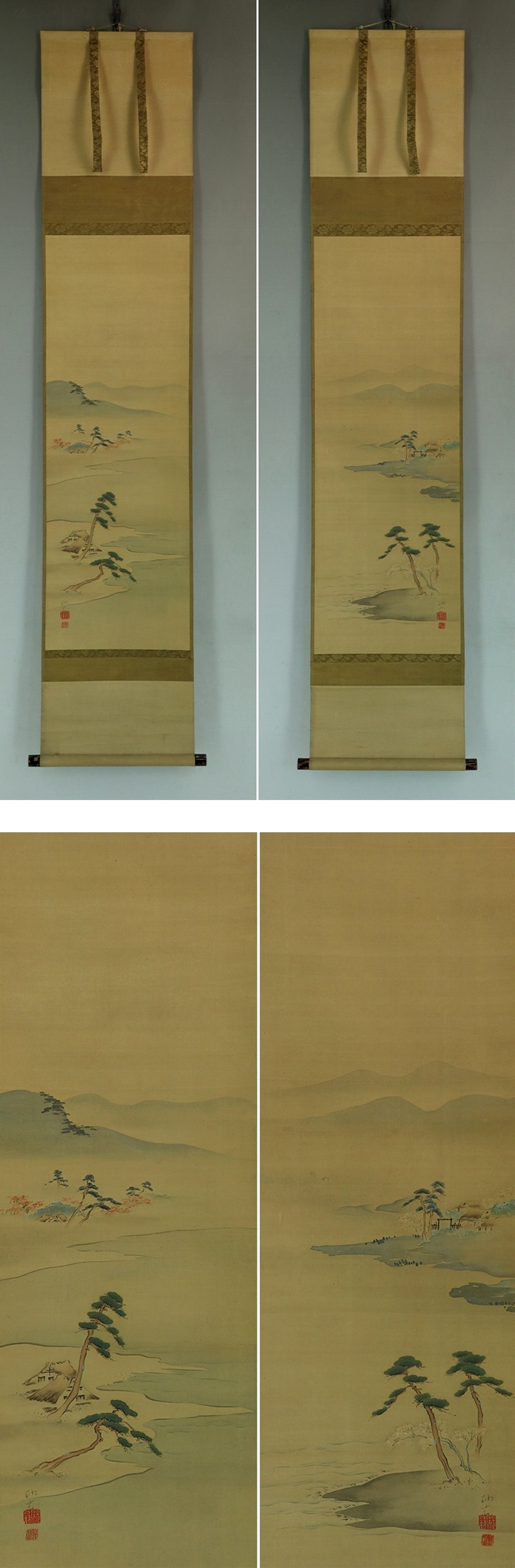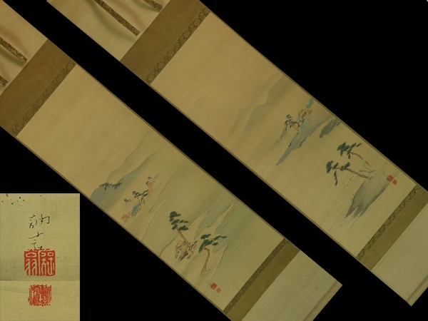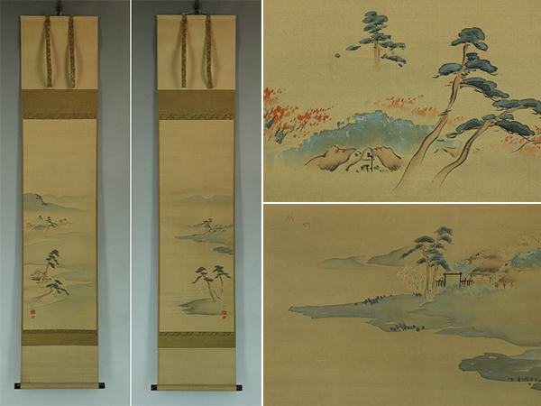 | №2209009【真作】田中訥言【双幅・春秋山水】◆絹本◆合箱◆掛軸 | |