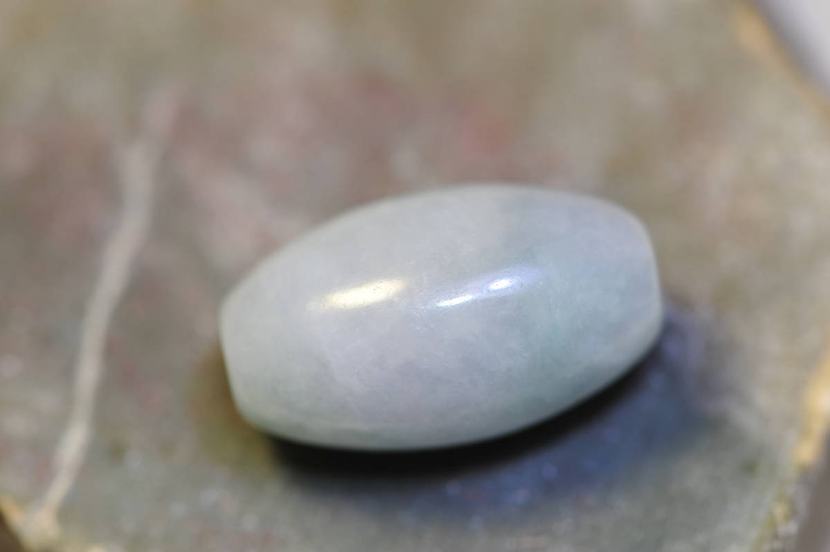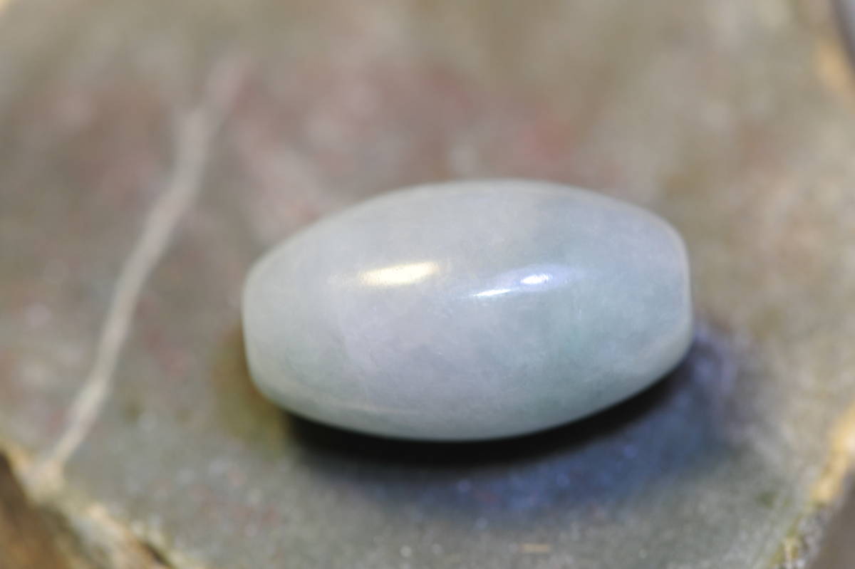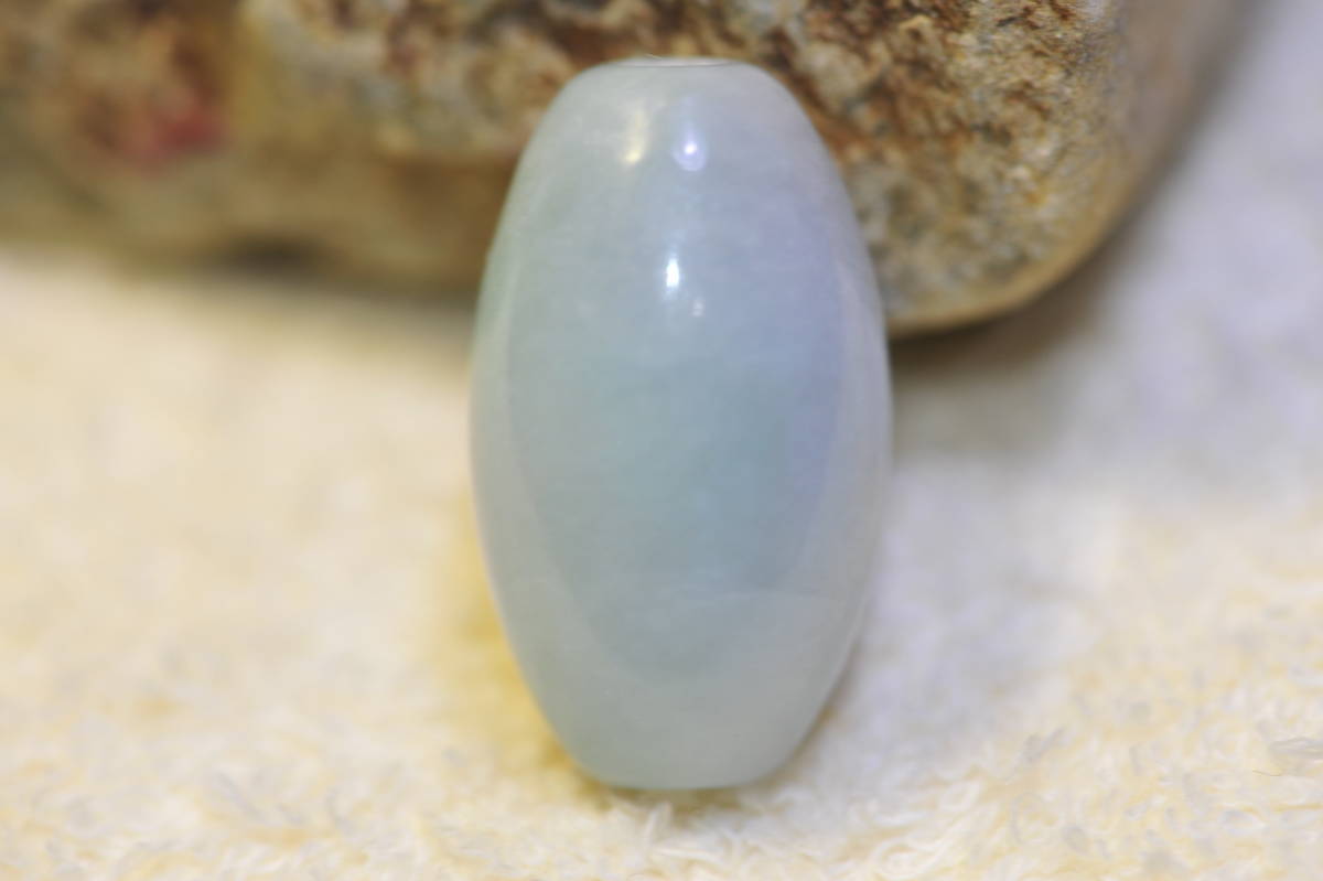 ミャンマー産翡翠を使って、製作された翡翠の管玉です。白地に極薄い緑色が見られる綺麗な管玉です。画像のようなラベンダー色はほとんどありません。ご注意ください。