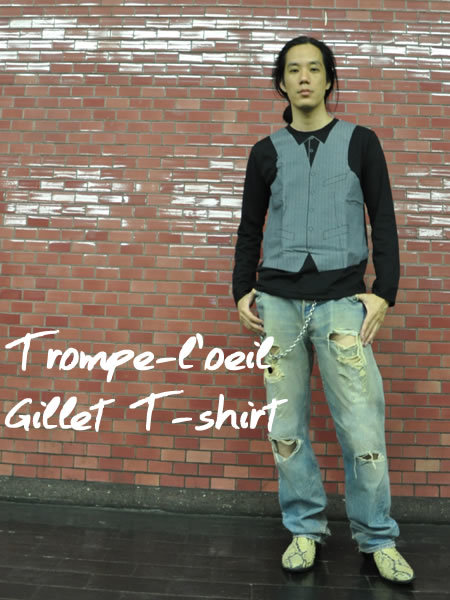 だまし絵 ベスト L/S T-shirt(騙し絵トロンプルイユ(trompe-l'oei)ベストロングスリーブTシャツ)