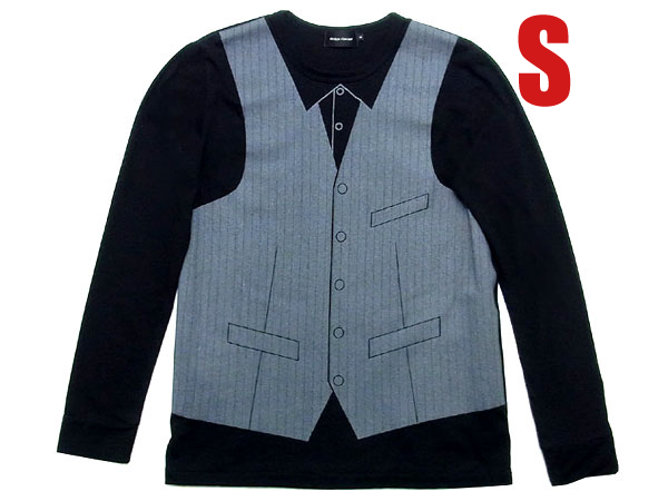 だまし絵 ベスト L/S Tシャツ BLACK STRIPES × GRAY S/結婚式二次会婚活パーティージレコスプレ衣装服装仮装コスチュームフォーマルウェア