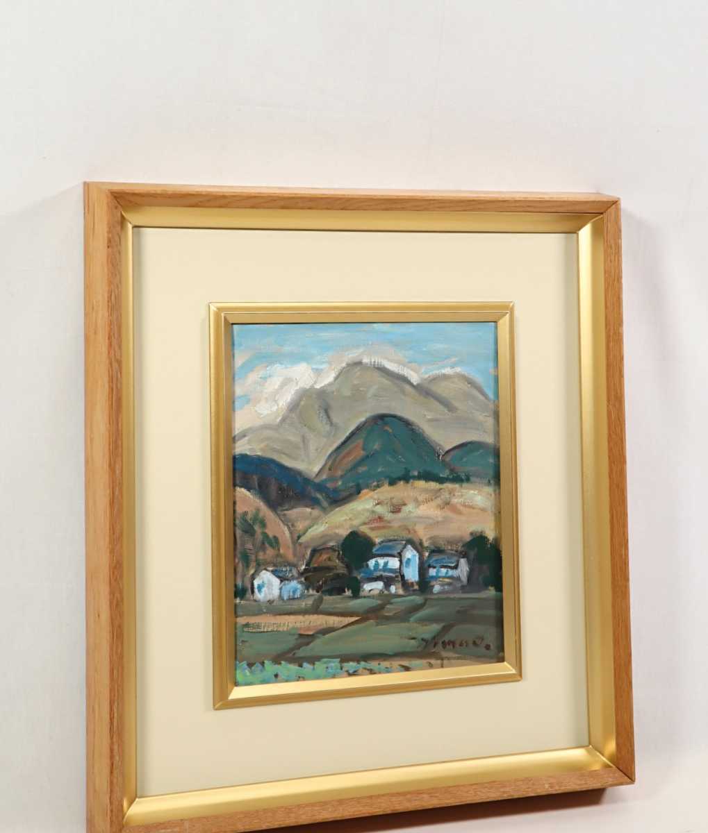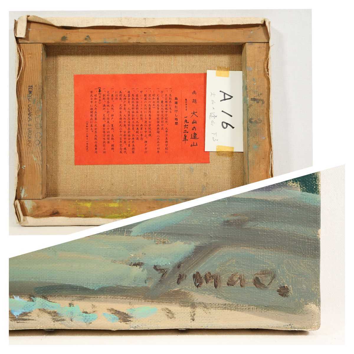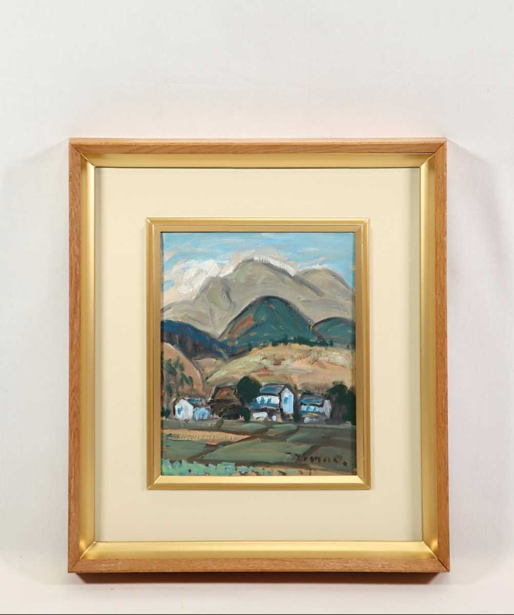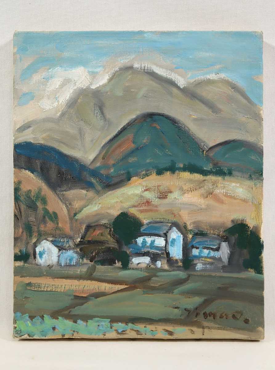 真作 島雄たけし 1962年油彩「大山の連山」画 22×27cm F3 鳥取県出身 鳥取県美術協会創立会員 鎮座する雄大な伯耆富士と麓の山村風景 6888