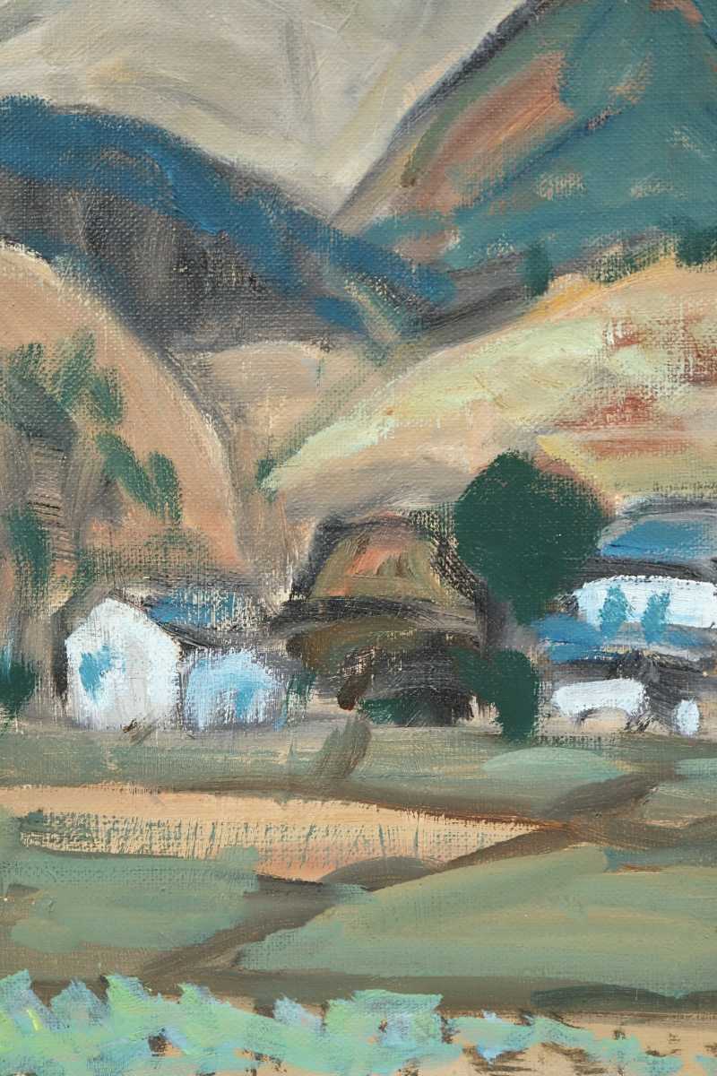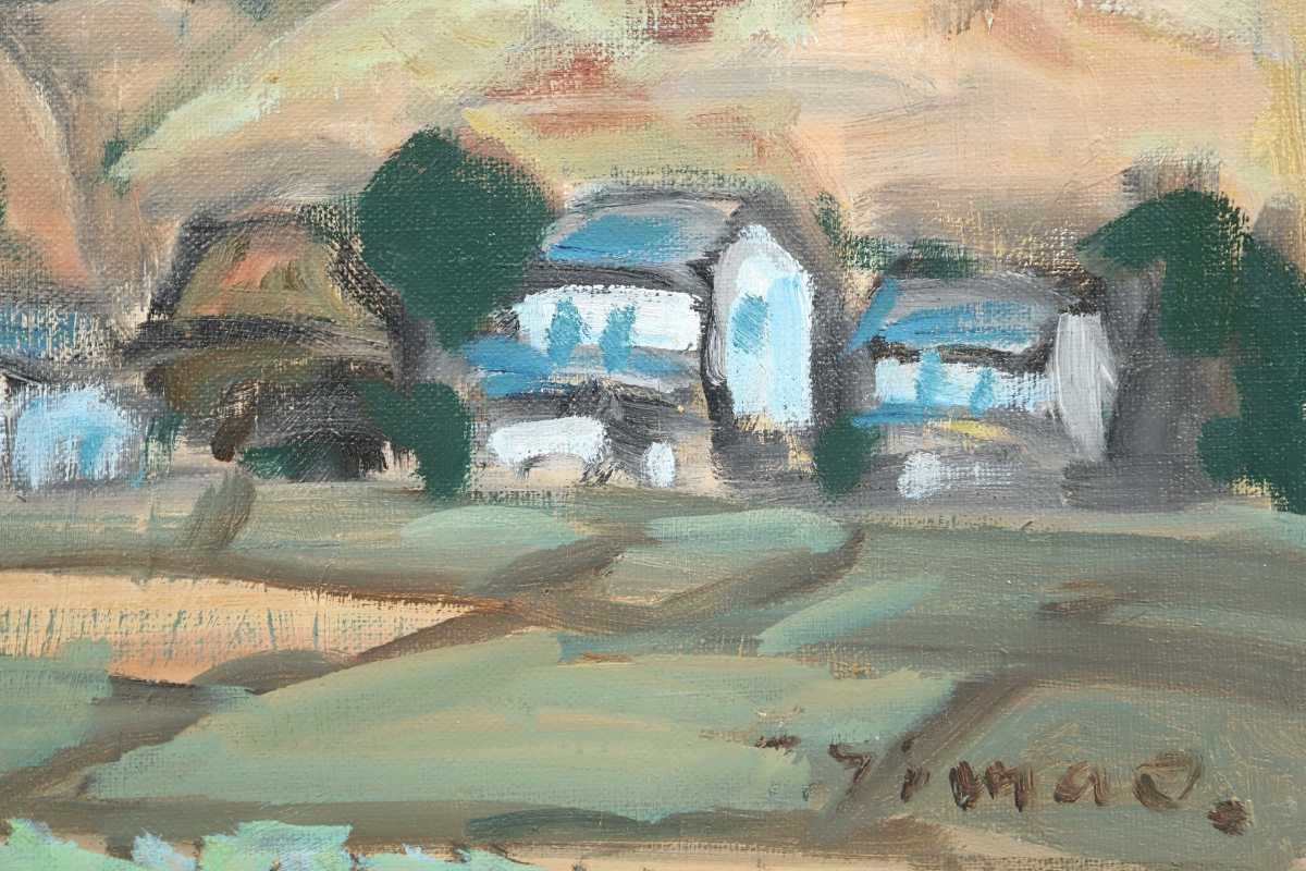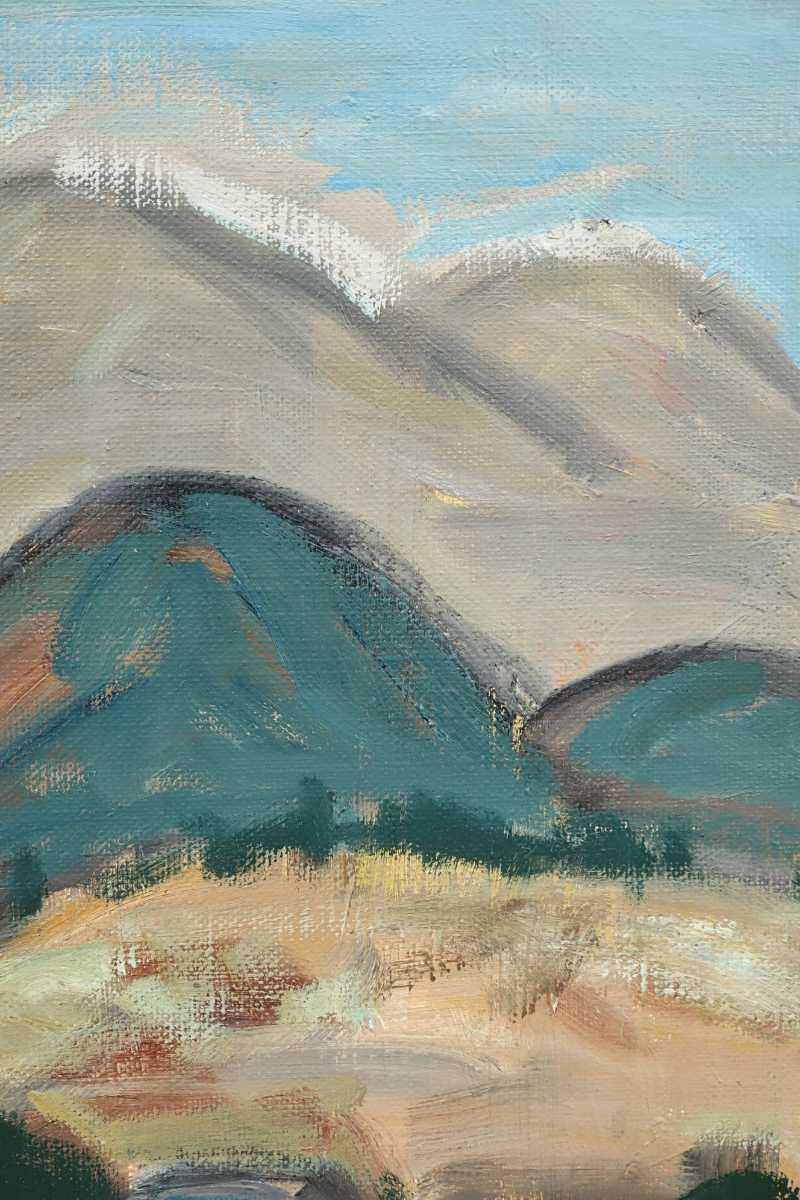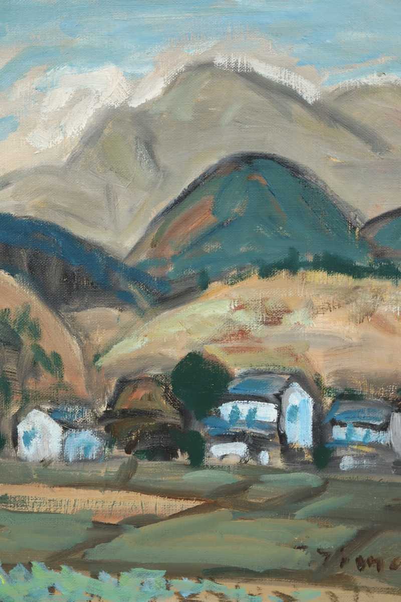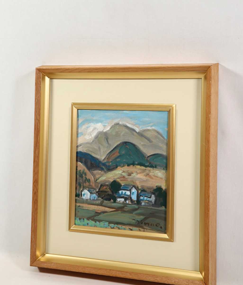 真作 島雄たけし 1962年油彩「大山の連山」画 22×27cm F3 鳥取県出身 鳥取県美術協会創立会員 鎮座する雄大な伯耆富士と麓の山村風景 6888