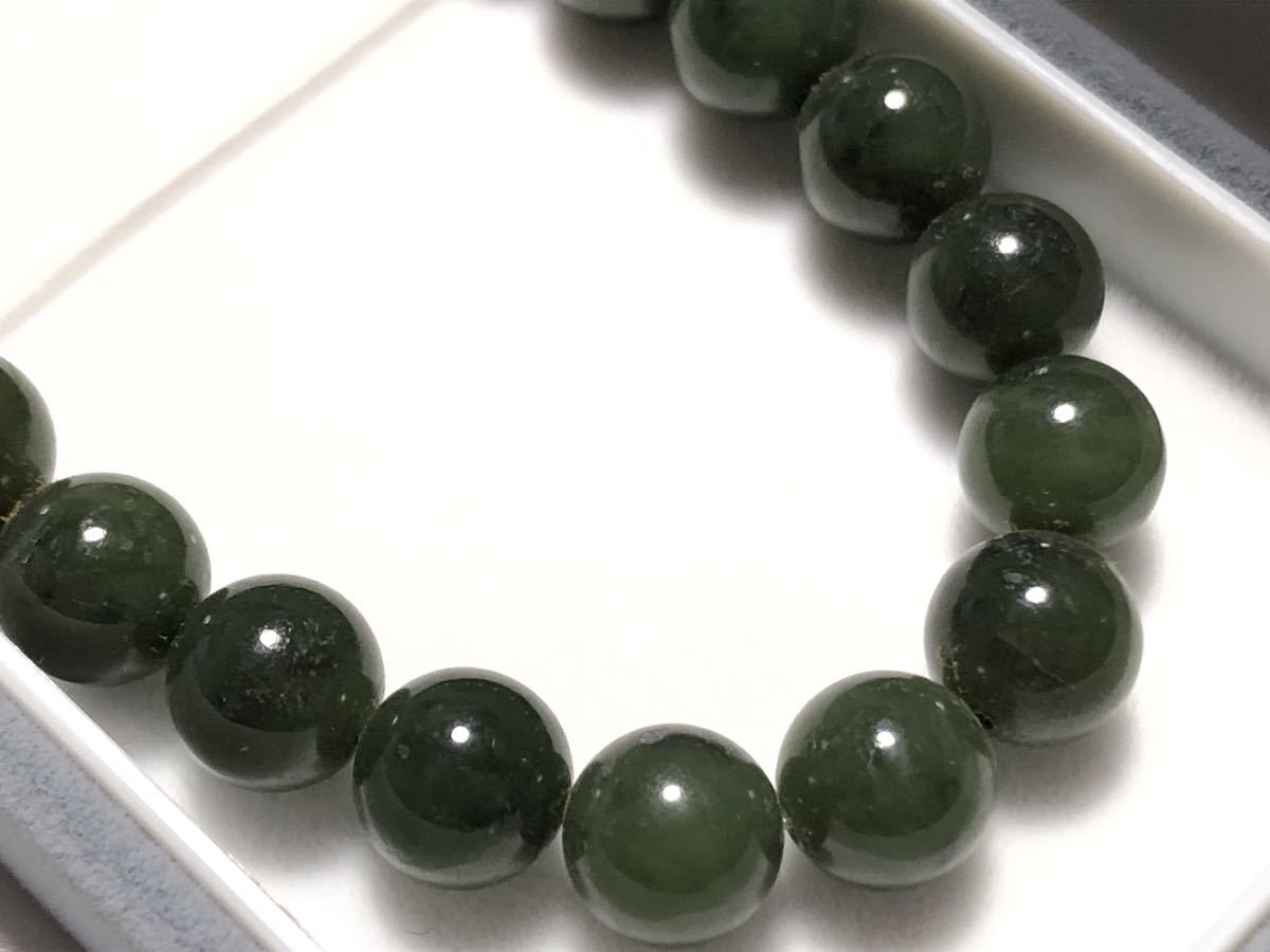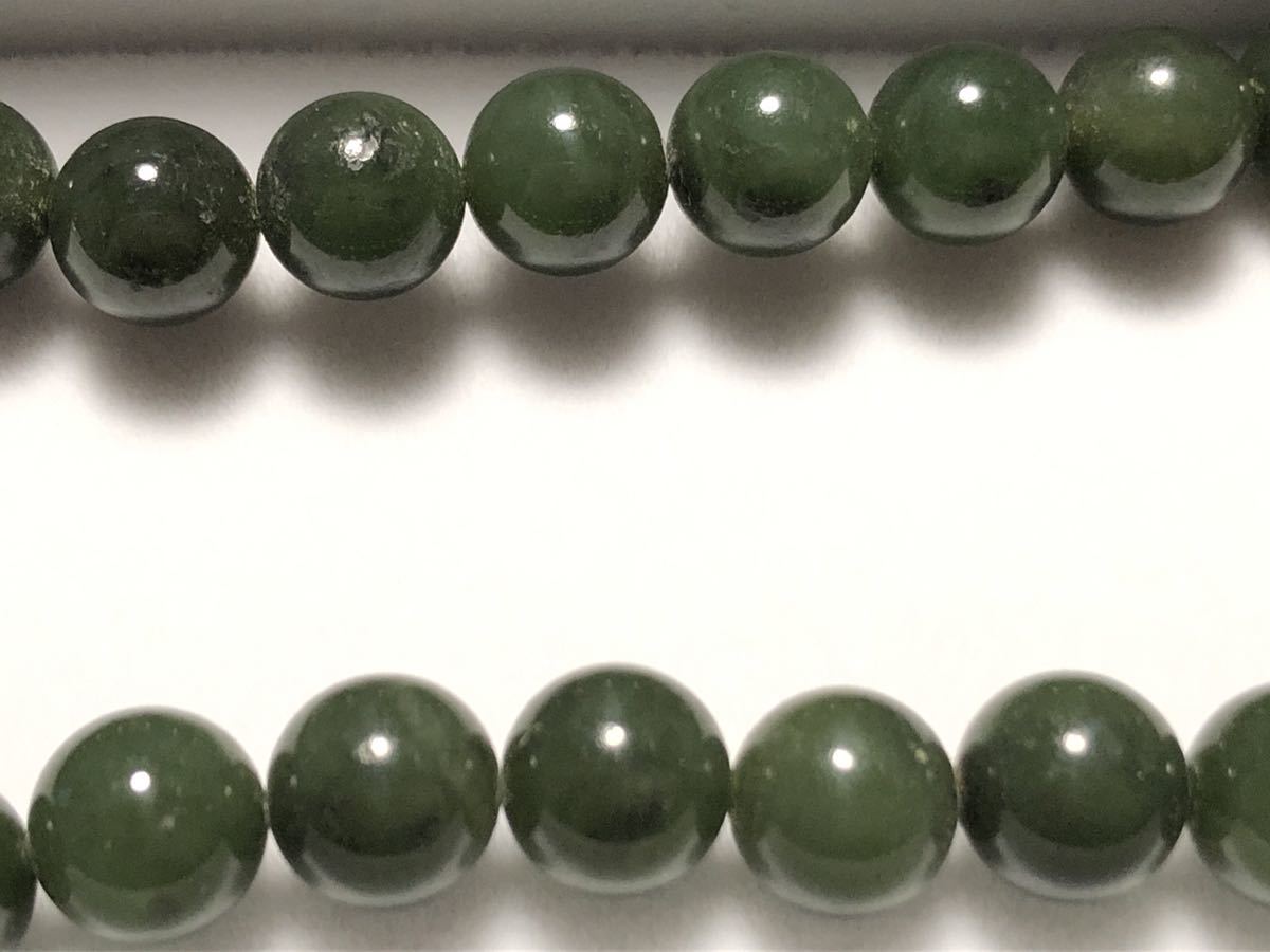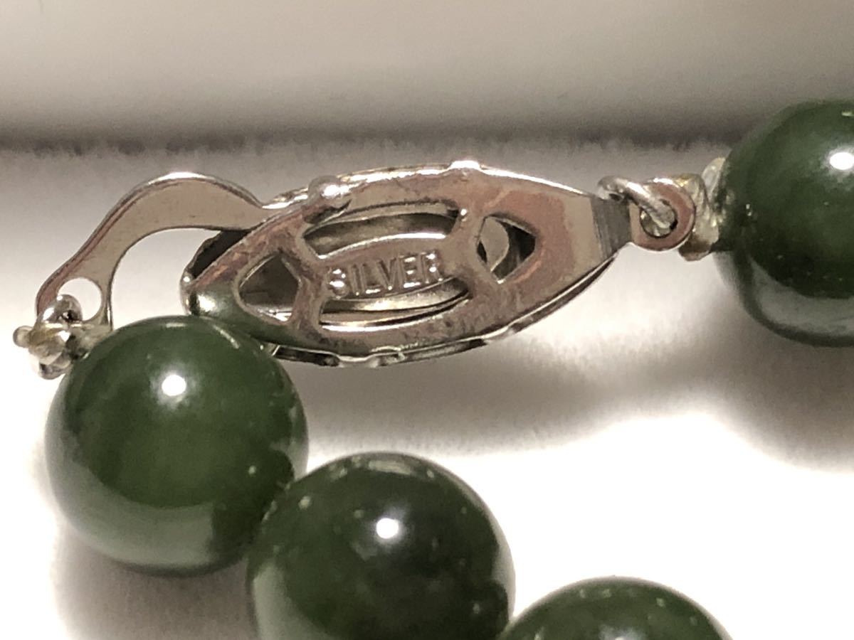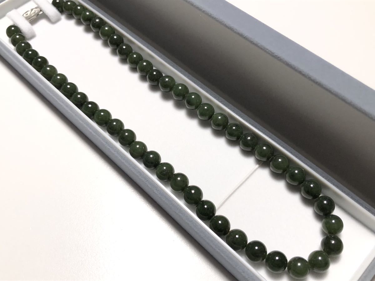 翡翠(軟玉)を使用した、8㎜玉のネックレスです。金具部分にはSILVERの刻印があります。