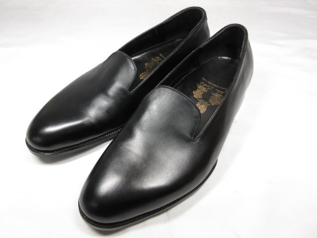 HH未使用【ロンドンロブ JOHN LOBB】 希少! ビスポーク レザースリッポン シューズ 紳士靴 (メンズ) size8.5相当 ブラック ★8HT1631★