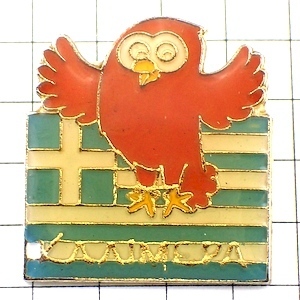 "ピンバッジ・フクロウ梟ミミズク鳥ギリシャ国旗"の商品説明 | |