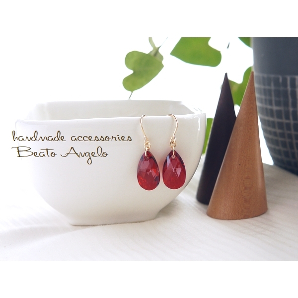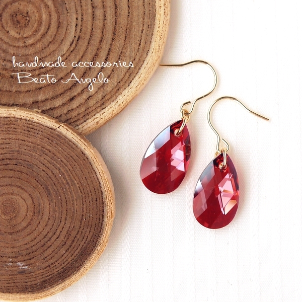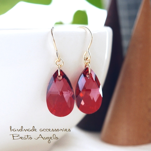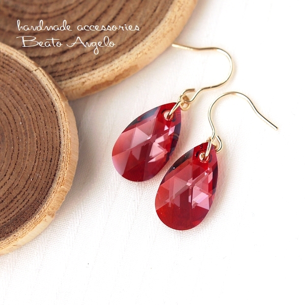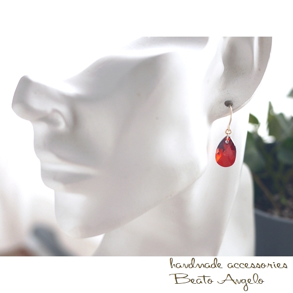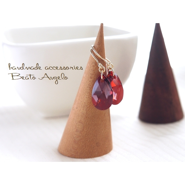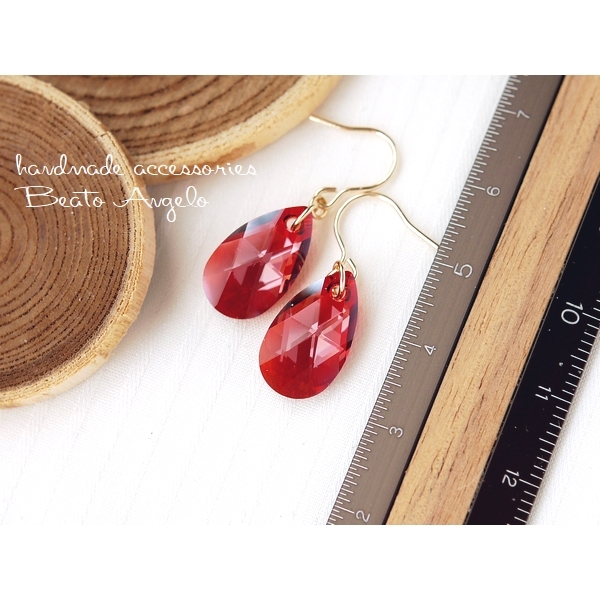 ◆+angelo+K14GF スワロフスキー 6106のピアス(p-027)Cレッドマグマ ドロップ 一粒