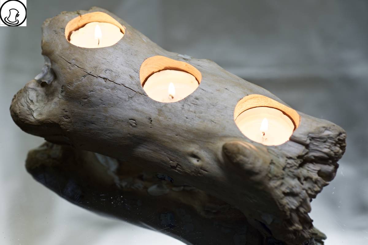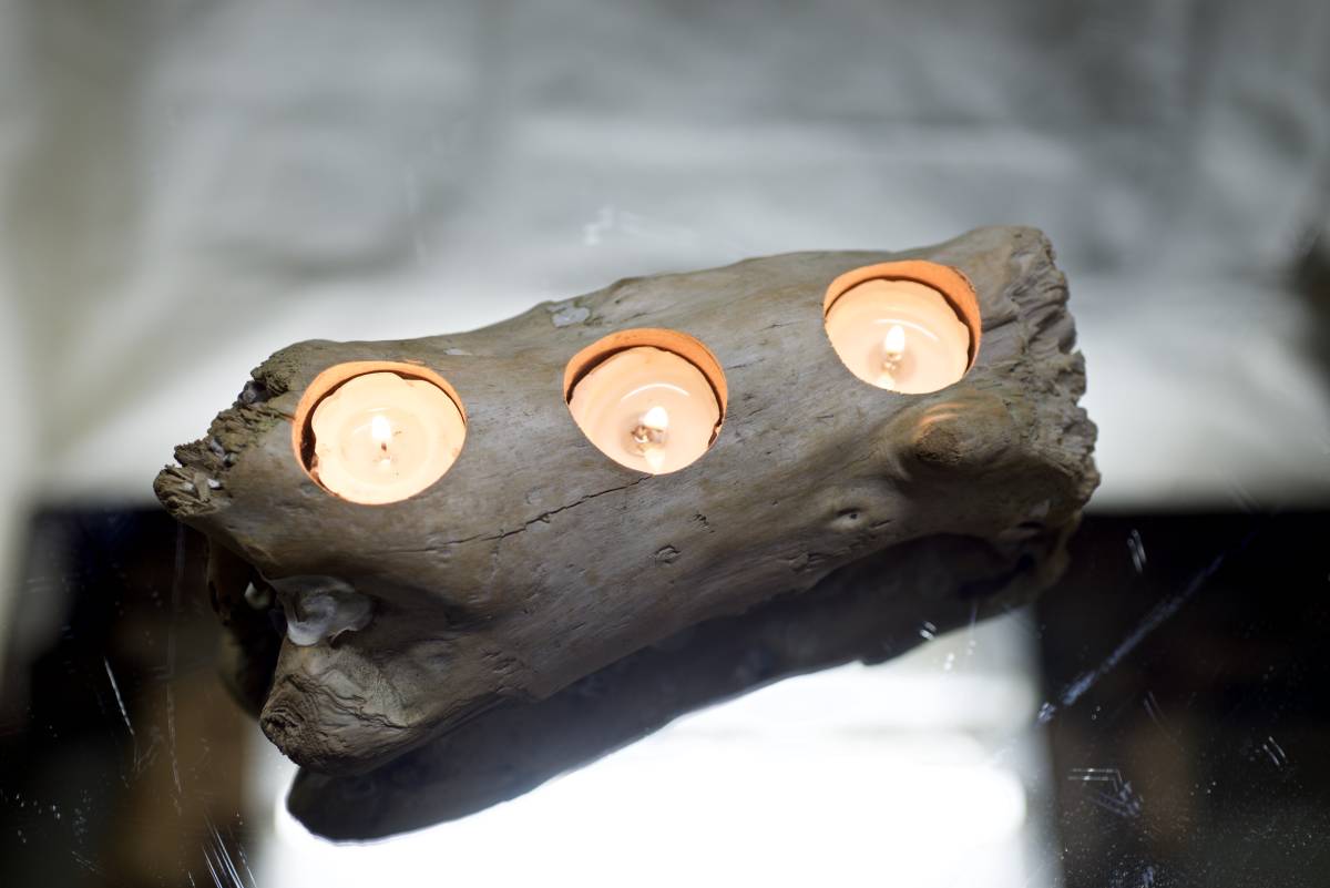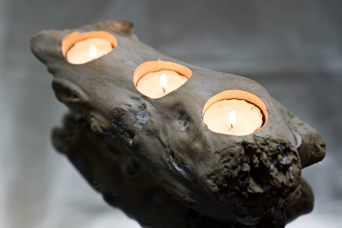 特に魅力的なかっこいい流木に穴を開けてキャンドルを飾るシンプルなデザインで、