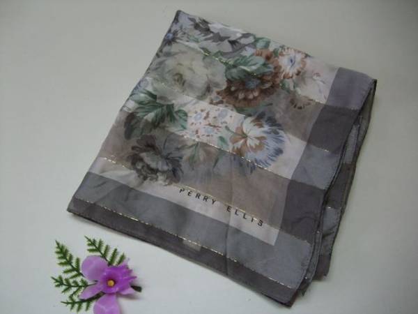 (^_^)絶品/ペリーエリス/大判スカーフ/PERRY ELLIS/シルク/絹/花柄/YY