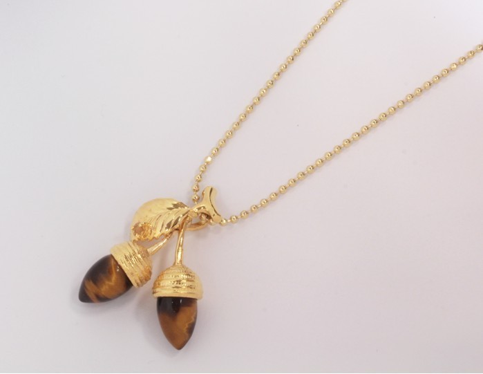 【状 態】未使用の商品です。K18GP(金メッキ)の60cmボールチェーン付き。虎目石2石入り。