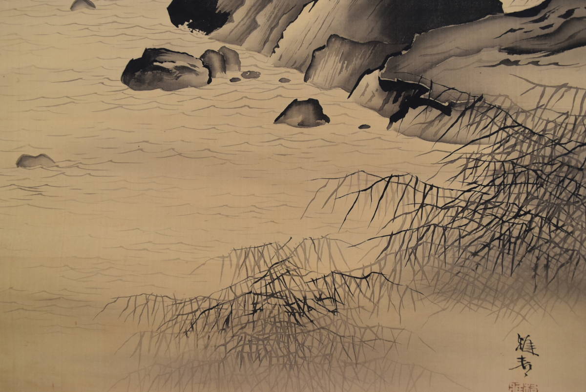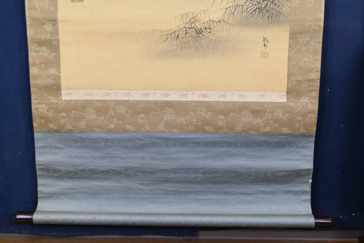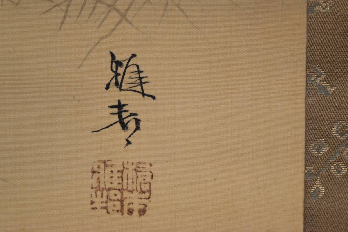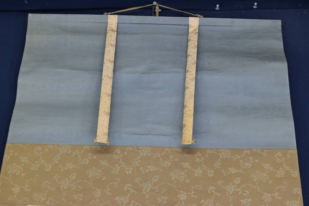 【作品状態】 本紙は絹本です。本紙は多少の薄汚れあります。表装は多少の薄汚れ、巻ジワあります。軸先は紫檀です。