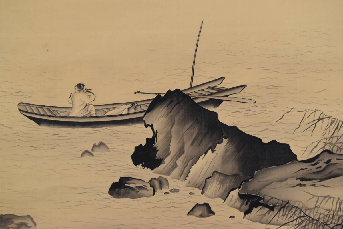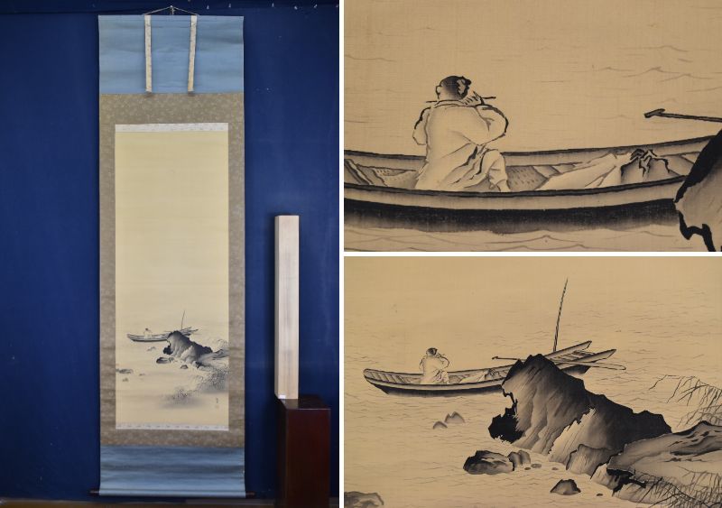 模写/橋本雅邦/舟に人物//掛軸☆宝船☆AA-827