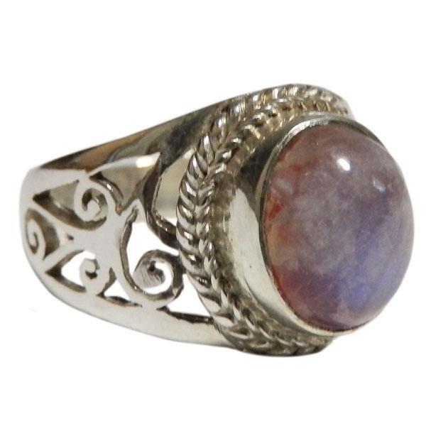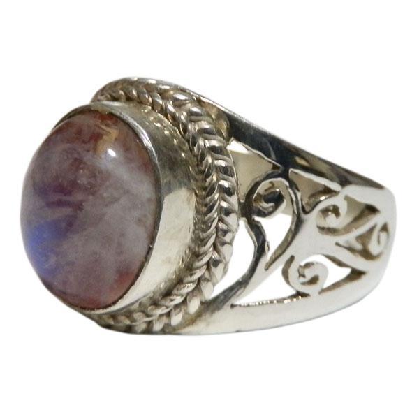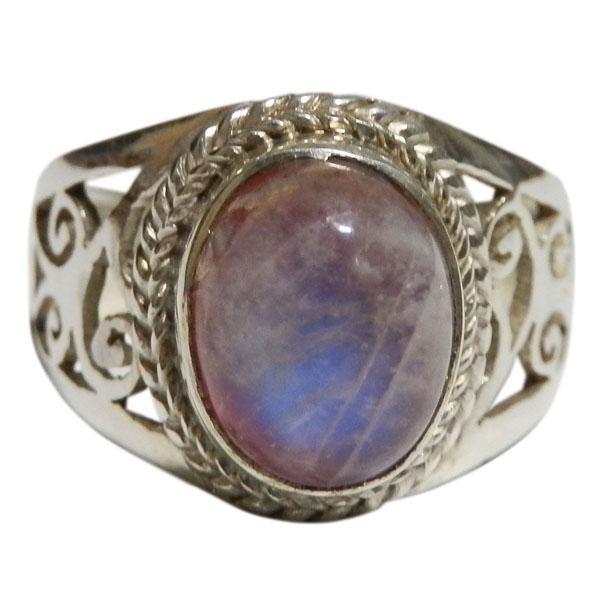 ■☆アジアン雑貨 ネパール銀職人 ピンクムーンストーン・リング(PNR-27)
