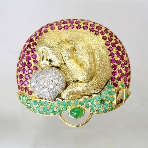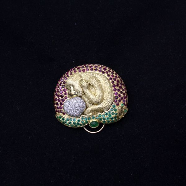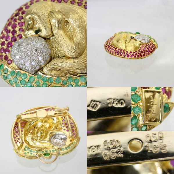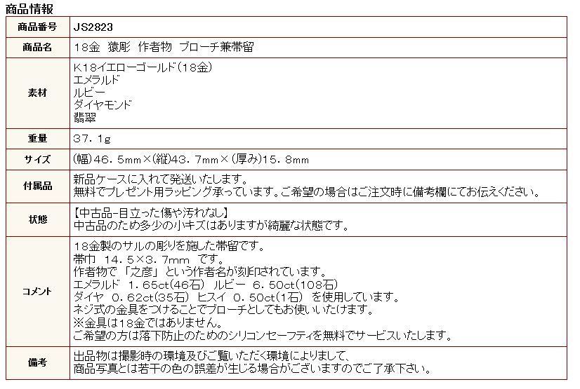 | 商品名 | 18金 猿彫 作者物 ブローチ兼帯留 |