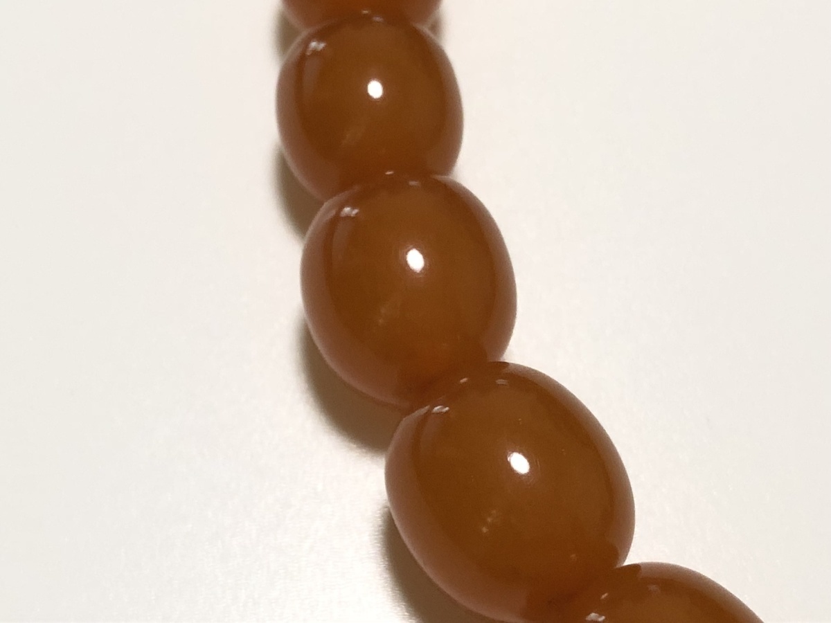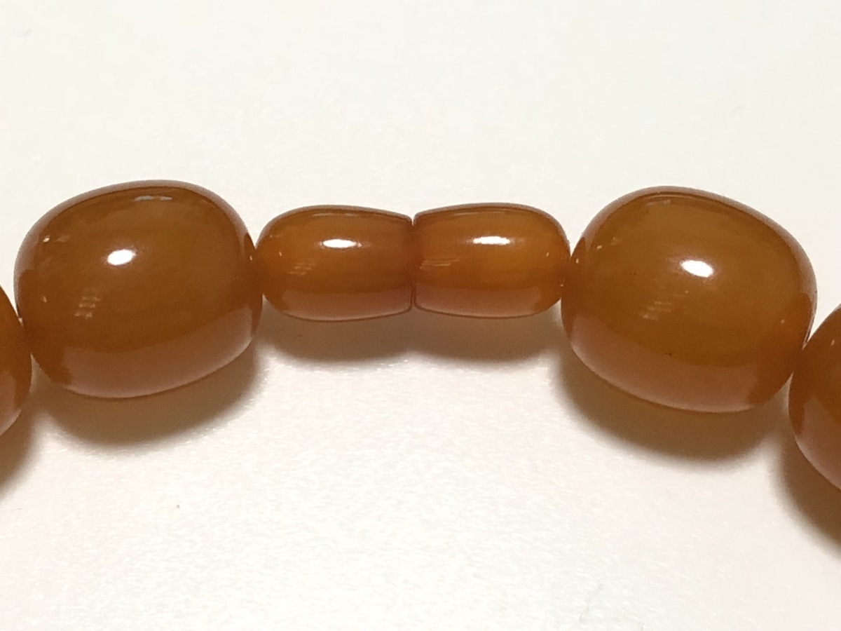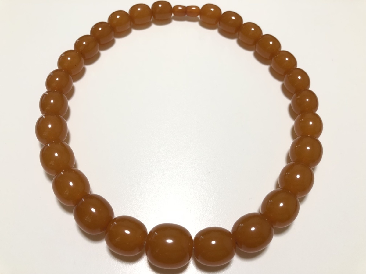 琥珀を使用した、特大ぶりのネックレスです。美品です。琥珀の天然、再生、合成かの詳細は不明です。