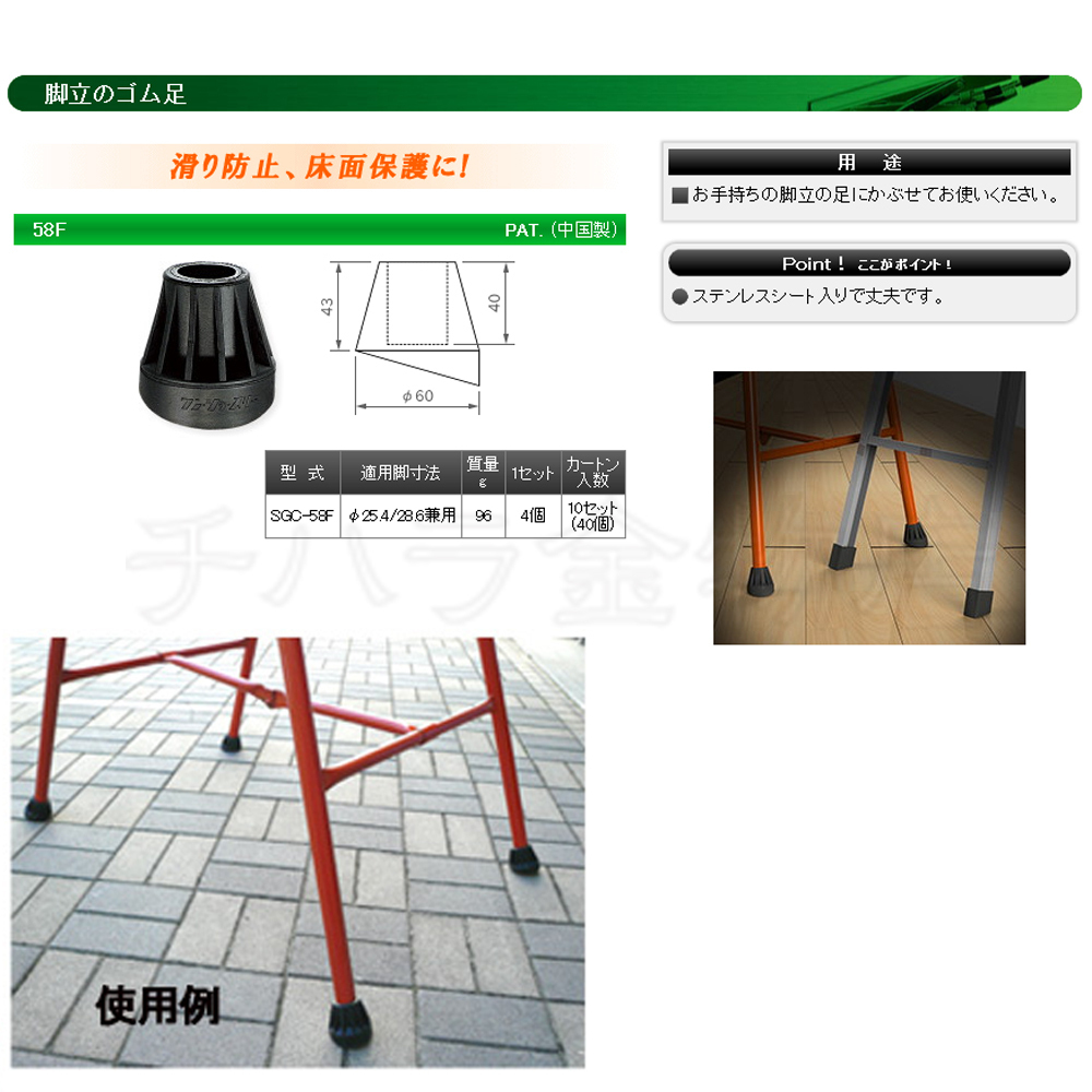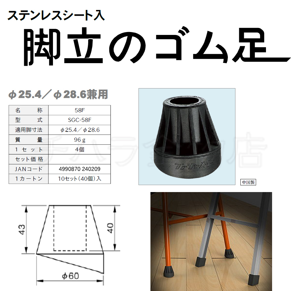 123 脚立のゴム足 4個入 58F φ25.4/28.6兼用 脚立1台分 脚立用脚カバー