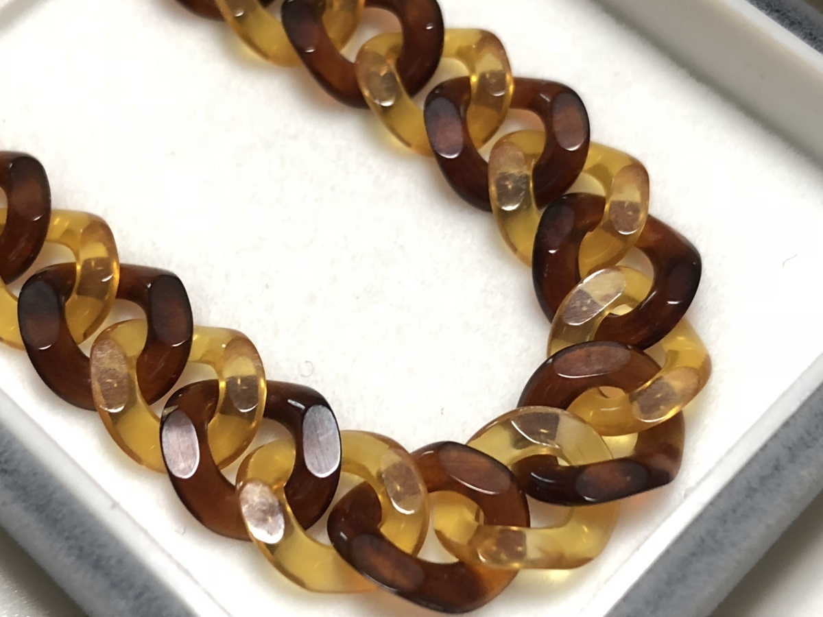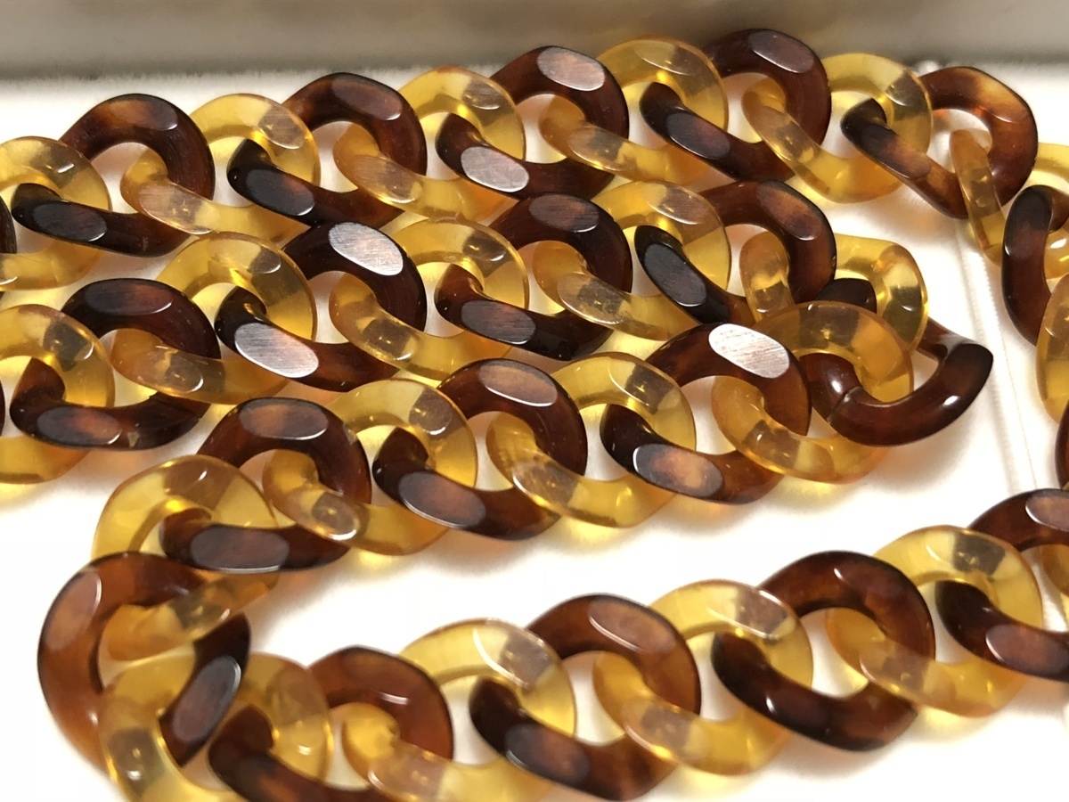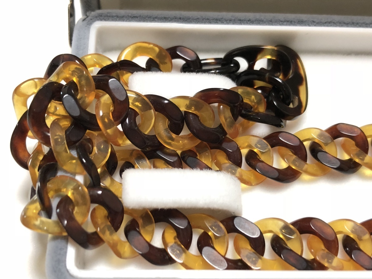 アンティークの白甲の本鼈甲を使用した、ツーカラー・喜平チェーンデザインロングネックレスです。鼈甲部分に欠けや虫食いは無く、状態良好です。 長さ61.5㎝、幅1.0㎝、重さ10.4g