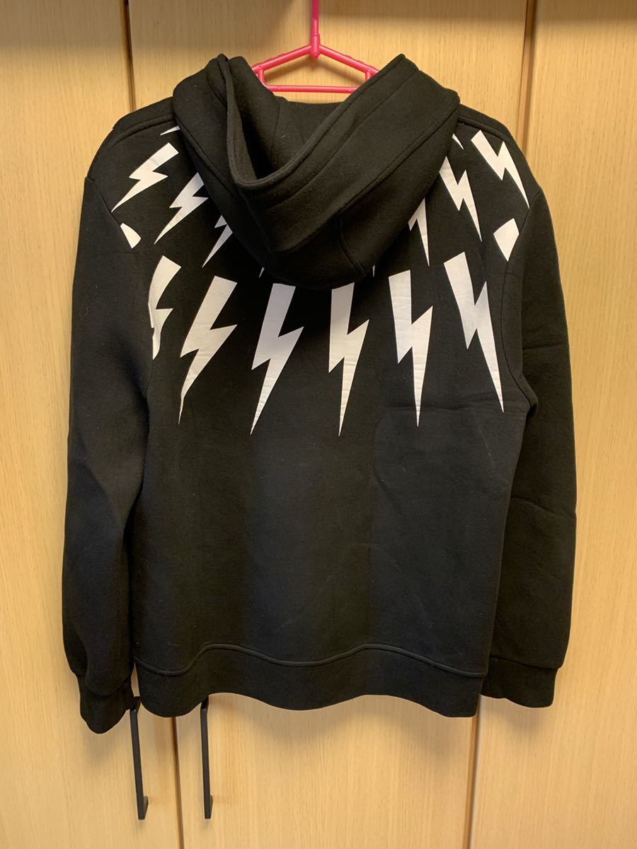 国内正規 19AW Neil Barrett ニールバレット サンダー ボルト 稲妻 BOLT ボンディング ネオプレン ジップアップ パーカー フーディー 黒白 S