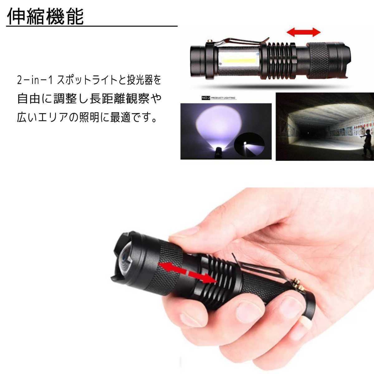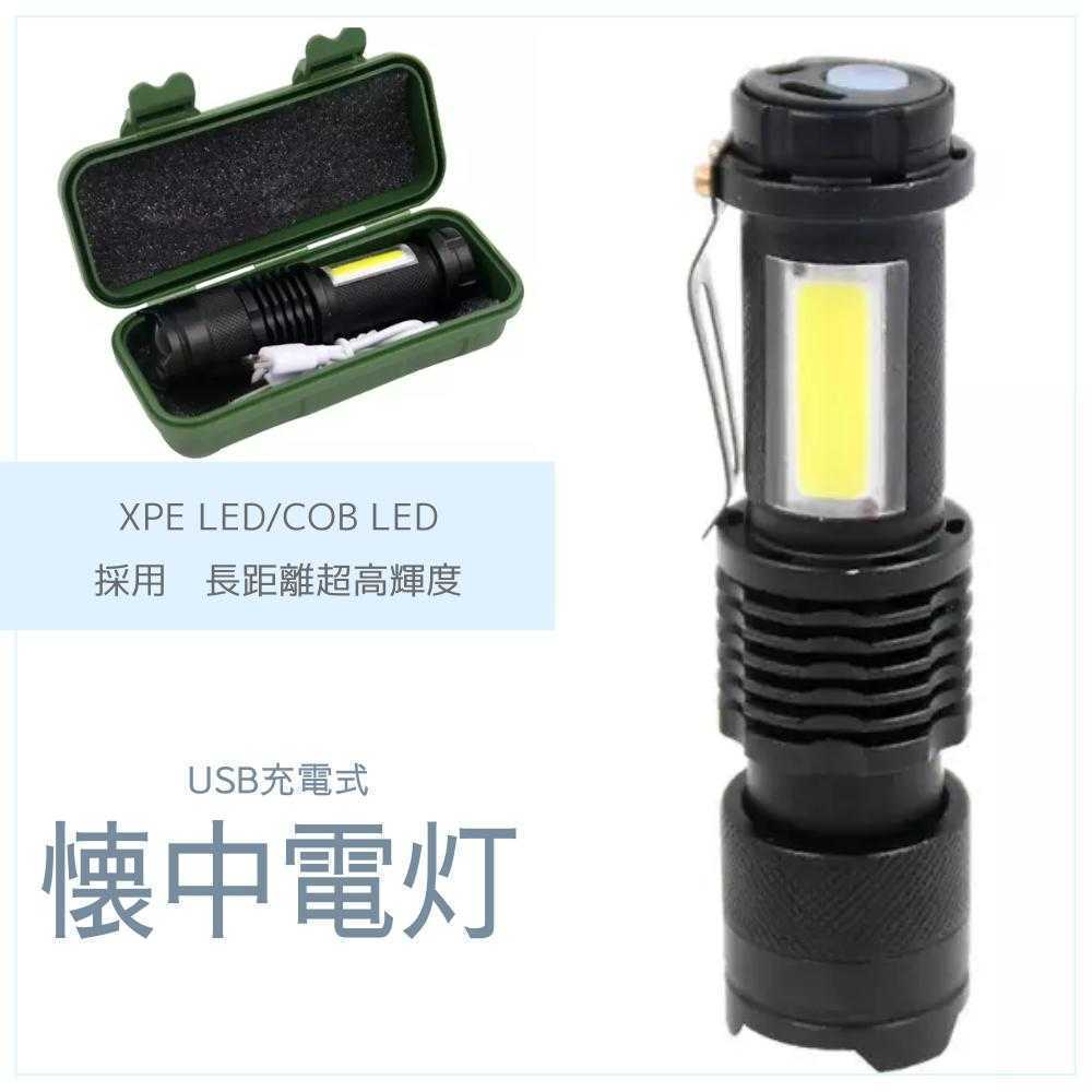 小型USB充電懐中電灯、内蔵リチウムイオン充電電池型強光懐中電灯、直接USB充電可。