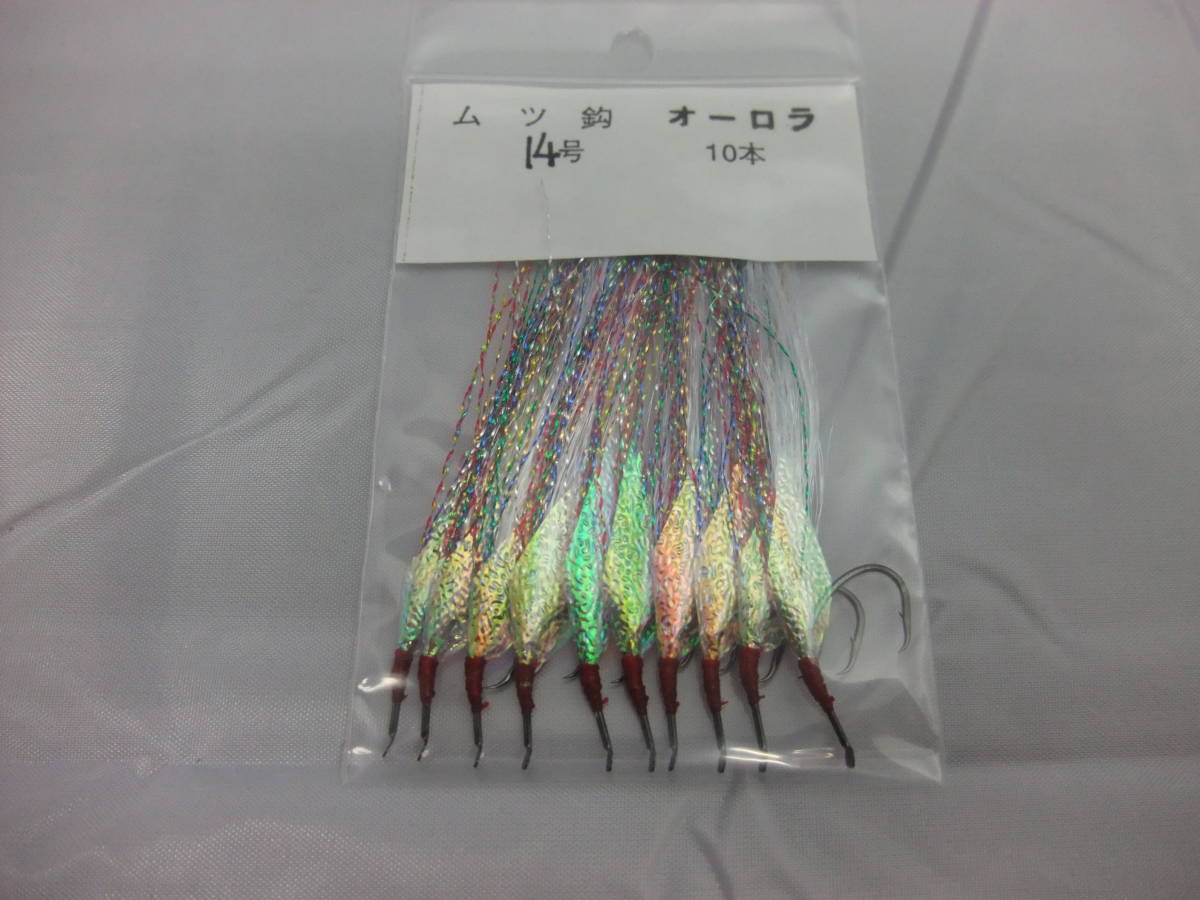 14SOE ムツ14号毛針 白フラッシャー オーロラエンボスシート付き 10本セット