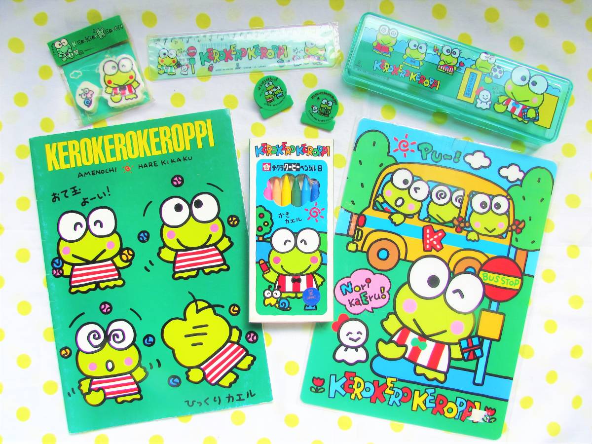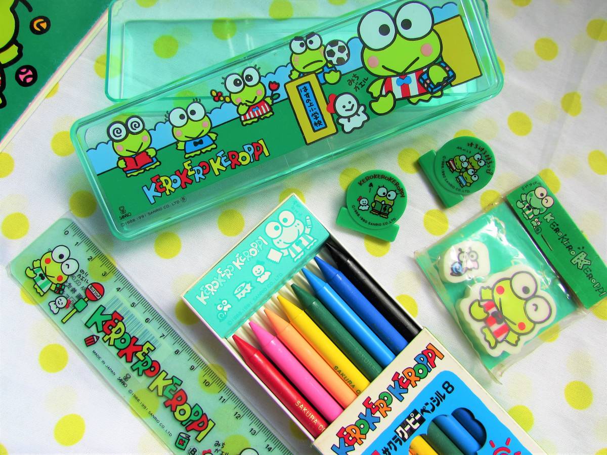 激レア♪90年代平成レトロ☆けろけろけろっぴ☆ペンケース消しゴムノート下敷きクーピーペンシル定規クリップ☆サンリオ入園入学子供文具