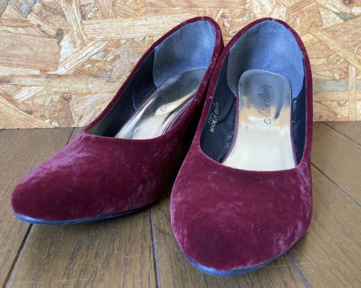 ◆ほぼ未使用◆ レディース ベロア パンプス ボルドー L[24.5cm位]