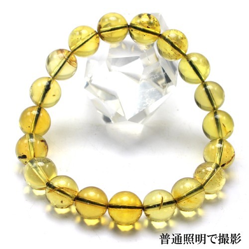 | 【 天然石 パワーストーン アクセサリー ファッション 雑貨 】 ドミニカ共和国産の天然ブルーアンバー(琥珀)ブレスレット。 約2500年から3000万年前の広葉樹の樹脂が長い年月をかけて硬化した樹脂の化石です。 ブルーアンバーは通常の状態では透き通った黄色なのですが、 ブラックライトなどで紫外線をあてると 美しいブルーに輝く大変珍しい奇跡のアンバーです。 アンバーはエネルギーを転換させる能力を持ち散らばっているエネルギーをグラウンディングさせます。 この石を選ぶ時 現在集中力が欠いていることを告げています。アンバーは 深く暖かい落ち着きを与え、魂をなだめてくれます。 感情が高ぶったり 落ち着かない時にアンバーはあなたの助けとなってくれることでしょう。 【注意】 ※照明の具合で実際とは色合いが異なる場合があります。 ※天然石のため 、 天然石特有のクラック・インクルージョン(不純物)等がある場合がございます。 ※玉サイズは(±0.5mm)です。 ※返品不可商品です。 | |