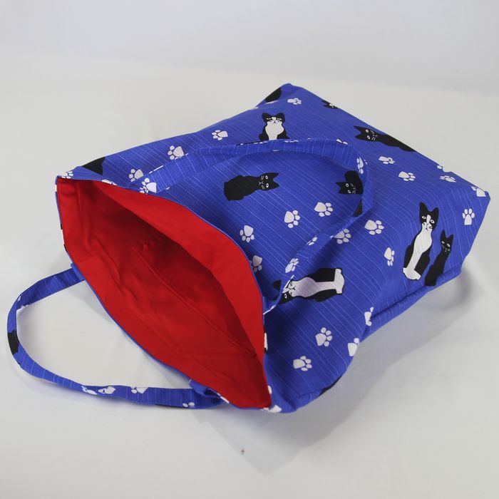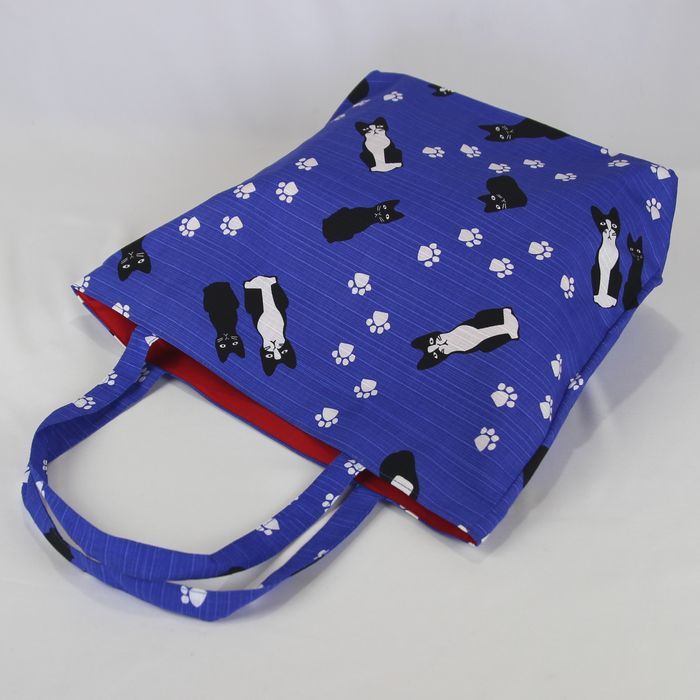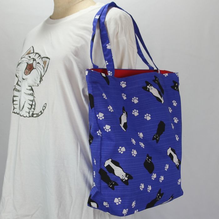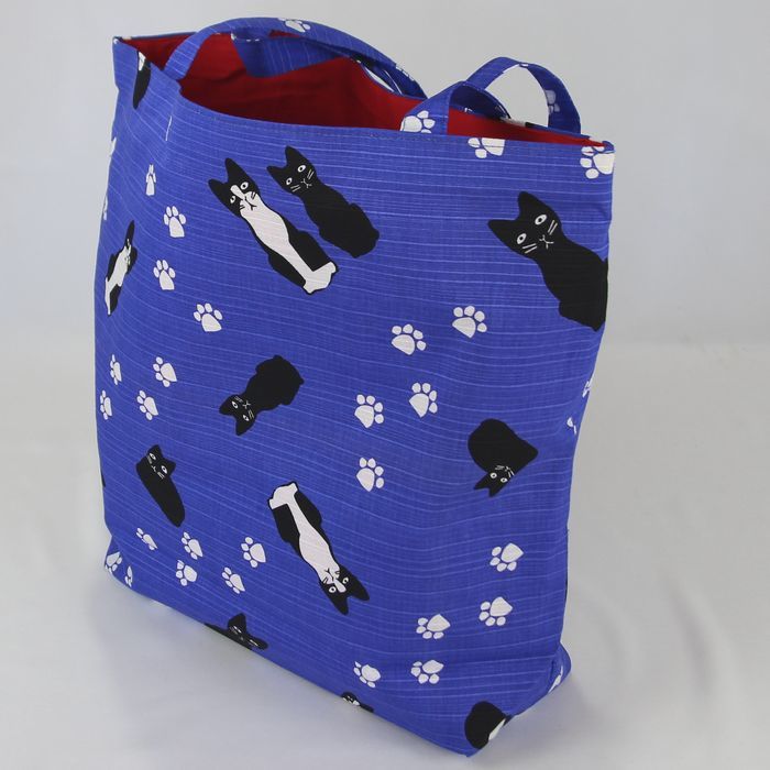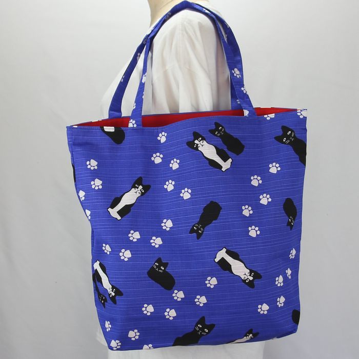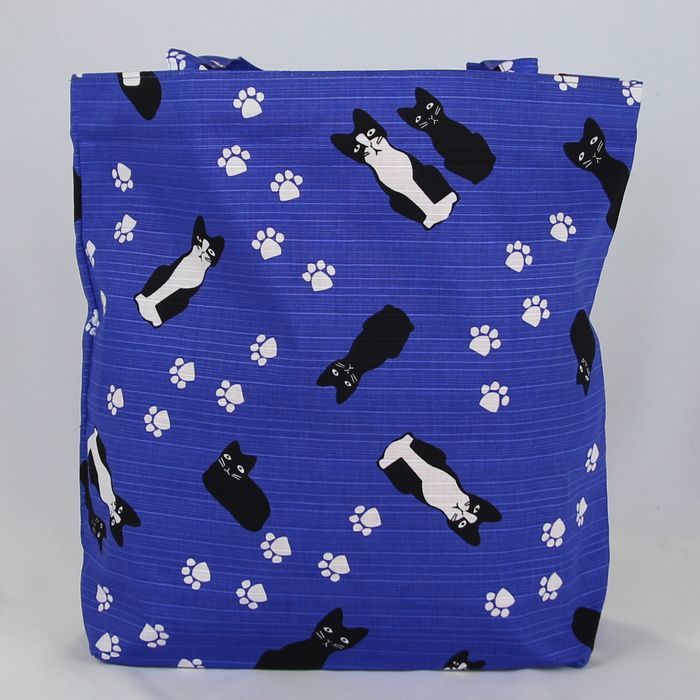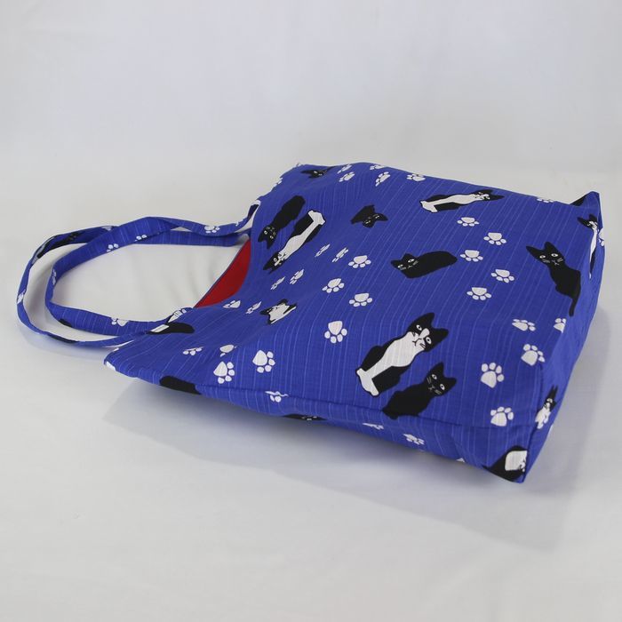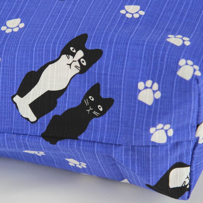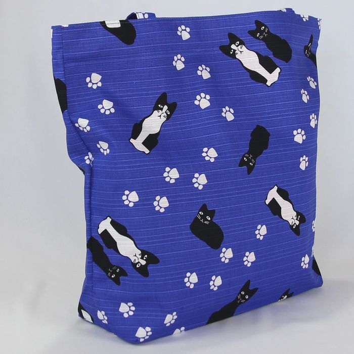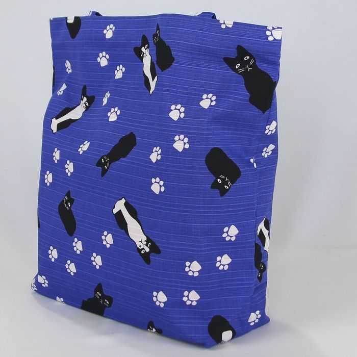 ★猫柄トートバッグ 陽だまり猫のら 和風バッグ 和装袋物 ミニ猫ドット柄 レディース おしゃれ 軽量 綿100% シャンタン 日本製 ブルー BA37