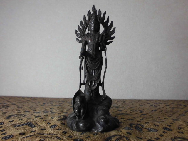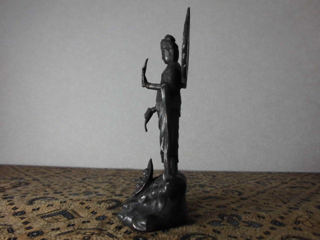 【商品説明】とても雰囲気のある観音様です。精巧な作が素晴らしいです。真鍮製。【サイズ】21.5センチ【2020年11月21日出品】