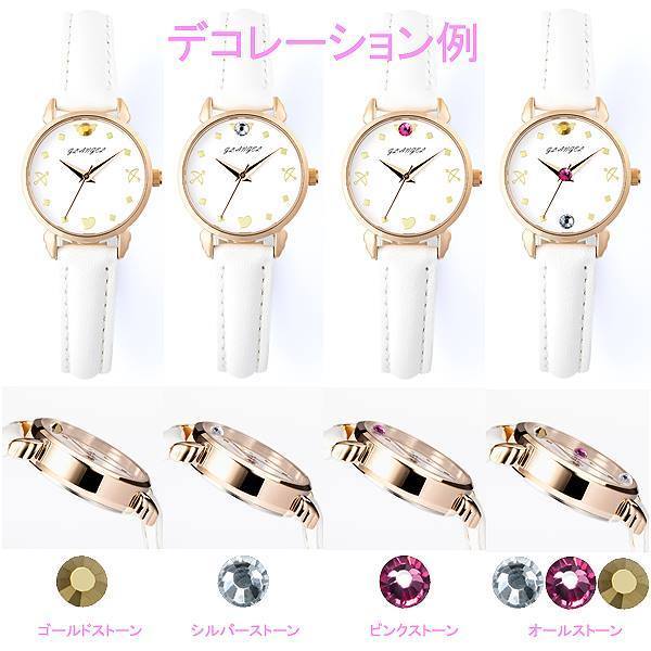 | 文字盤は幸運と天使をイメージした白基調に、3・6・9・12時のインデックスには天使の羽・弓・ハートがプリントされています♪ 3種類(ピンク・ゴールド・シルバー)のラインストーンが付属されており、お好きなところにデコレーションしてください♪ 自分だけのキラキラウォッチとしてもご使用できます♪ プレゼントとしても喜んでいただけると思います♪ |