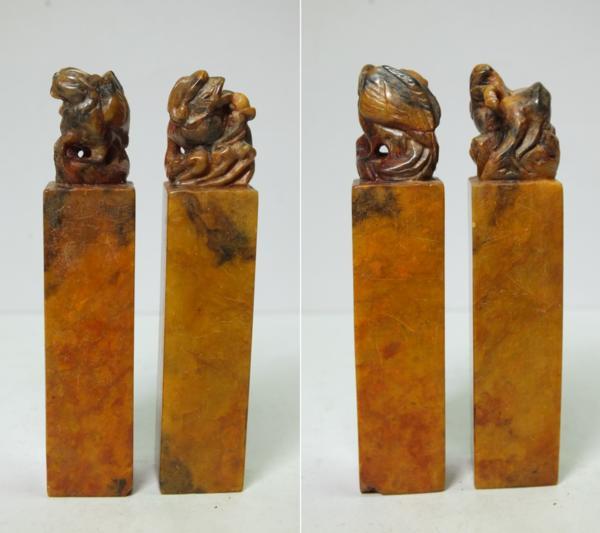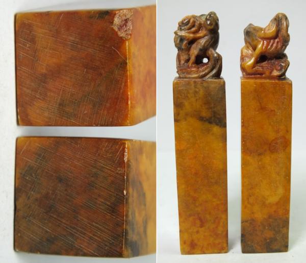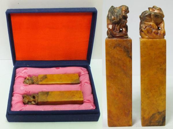 素材:石。重さ87g(2点で)。縦7.5cm、サイズ1.5cm×1.5cm。ケースに入っています。角に欠けている箇所があります。その他古いもので、経年の擦れ、汚れ、傷等ございます。状態は写真をご参照頂けますようどうぞよろしくお願いいたします。