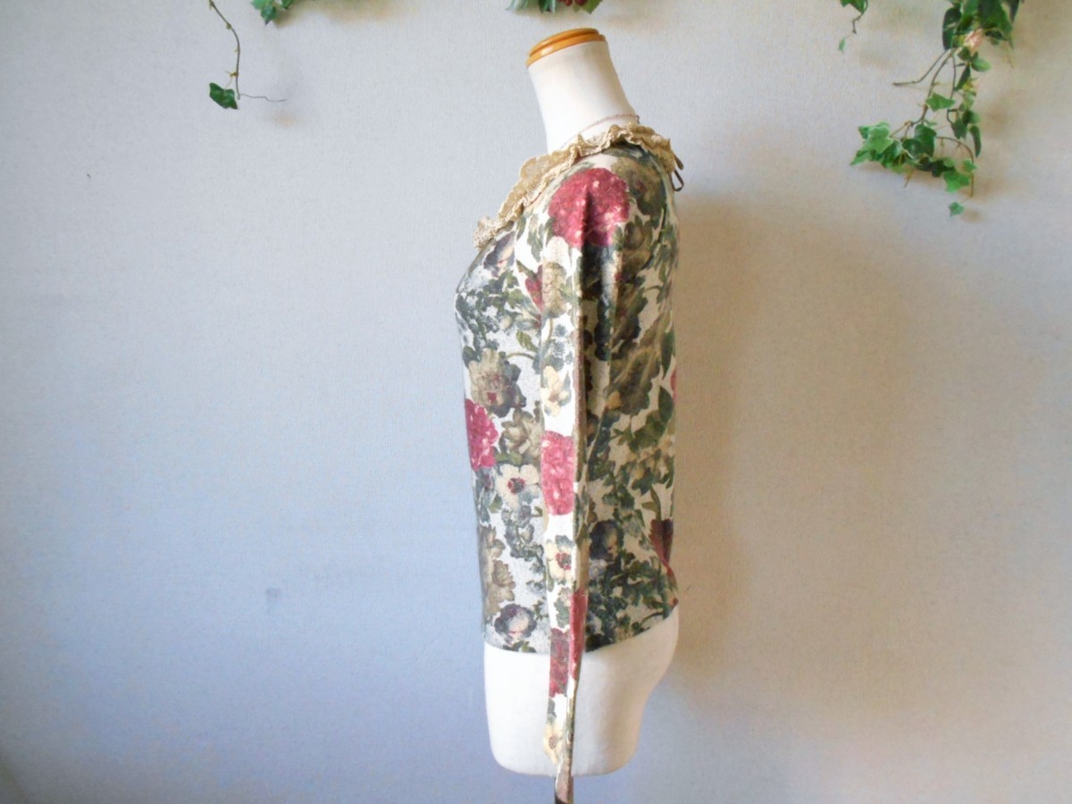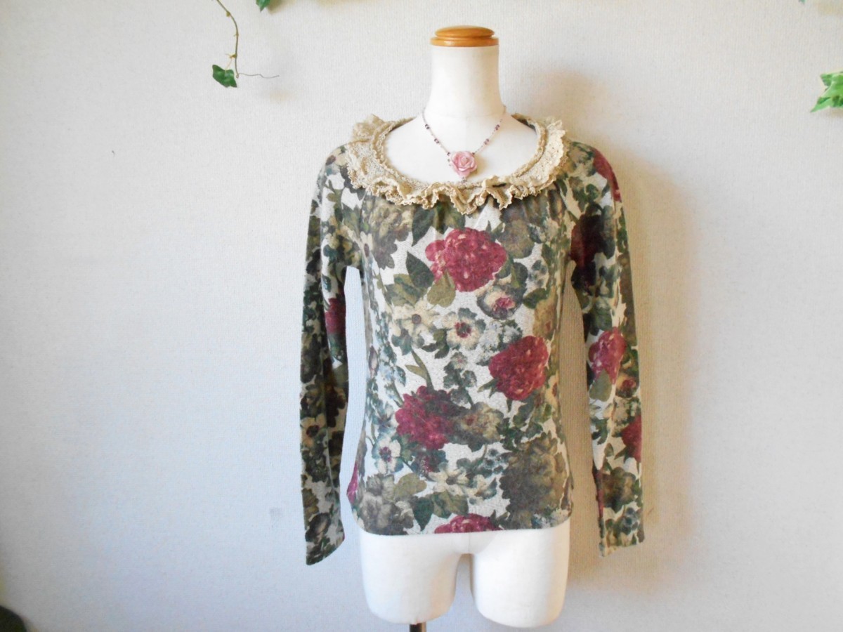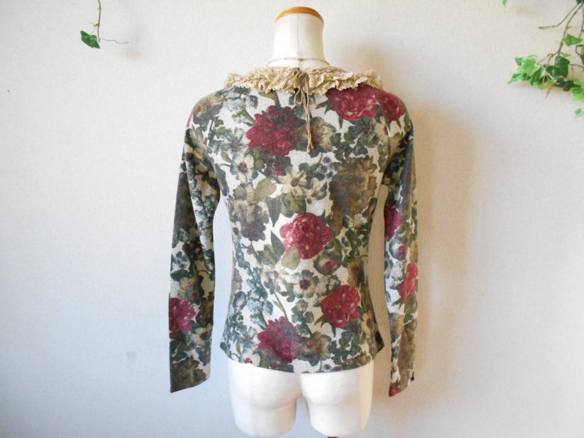 【ポイント】レストローズの薄手セーターになります。お色は多色使用の花柄で、長袖の秋冬向きです。