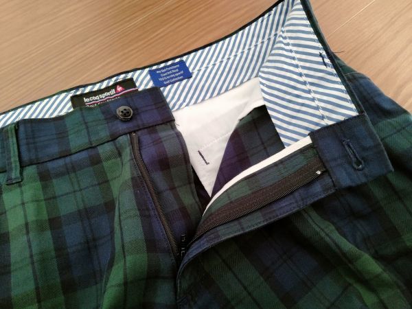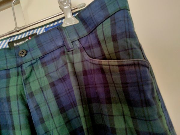 kkyj5384 ■ le coq sportif ■ ルコックスポルティフ ゴルフ パンツ ボトムス ノータック チェック グリーン 緑 紺 ネイビー 85 L