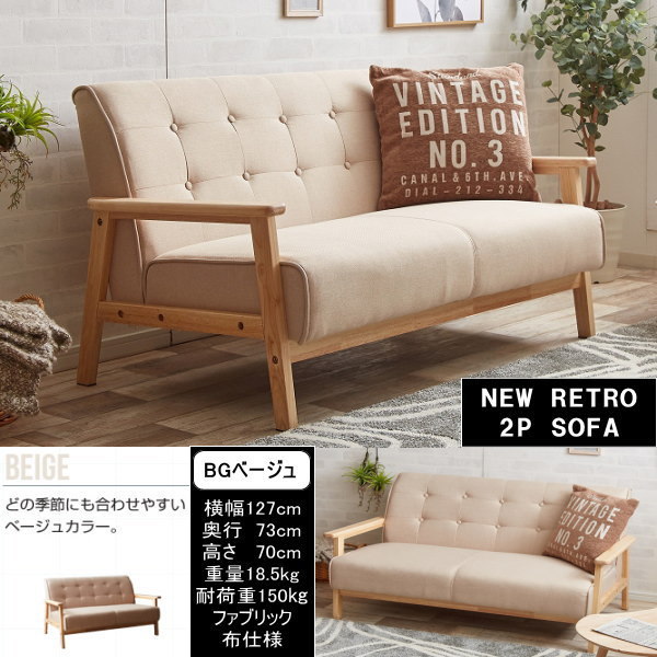 タイトル | 送料無料 懐かしい昭和の雰囲気 肌さわり抜群ファブリック 2人掛ソファ 横幅127cm RETRO BG ベージュ |