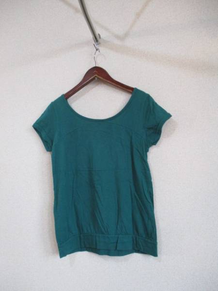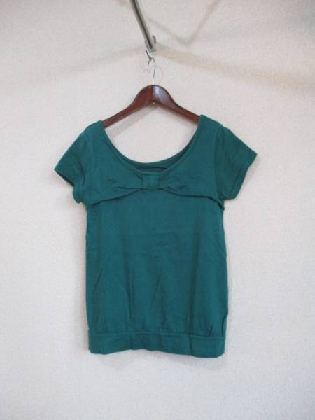 商品紹介 | 前後どちらでも着られる2WAY半袖カットソーです。 表側は胸元に切替えがある形で、後ろは襟元にリボンモチーフが付いたデザインです。 色は緑です。 《素材》 綿100% |