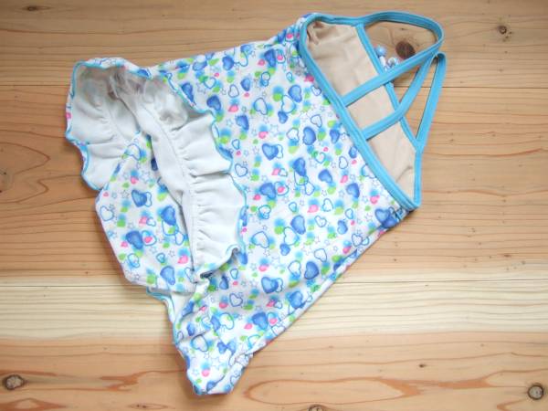 USED!キッズ可愛い水色ハート柄水着100センチ(4)